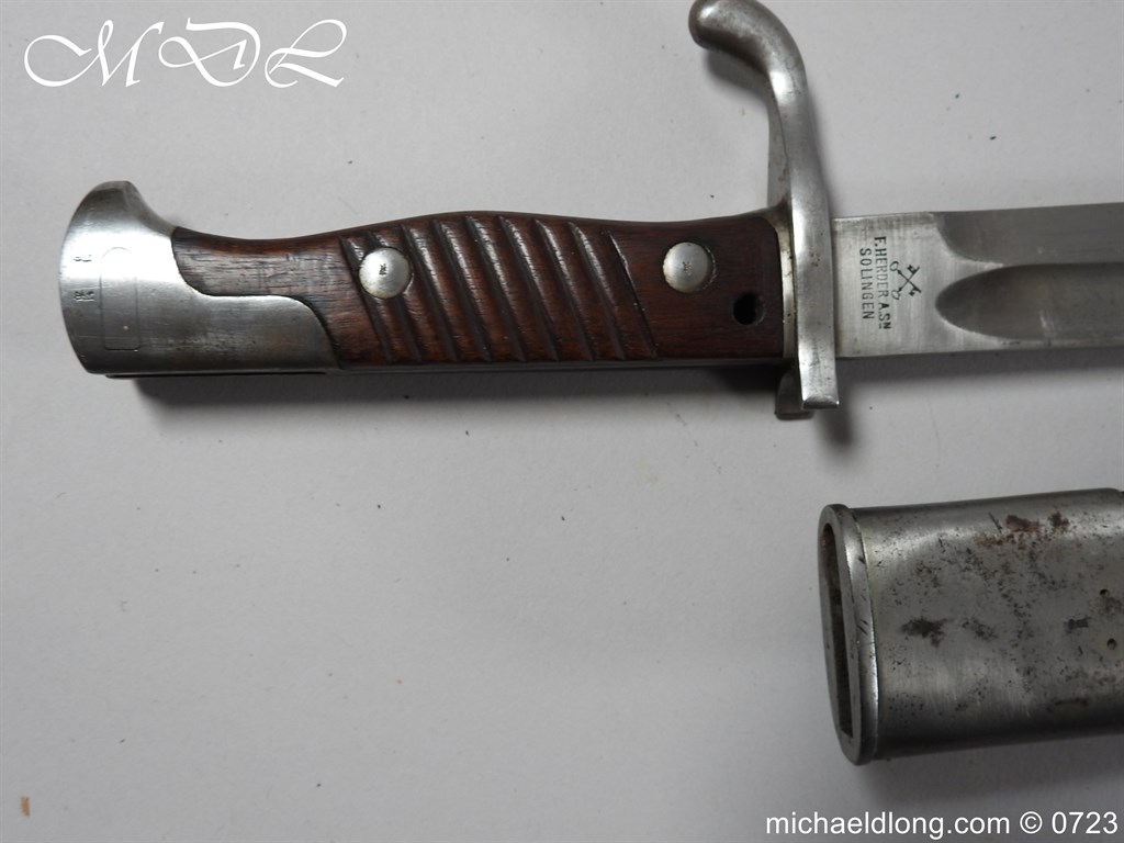 Imperial German WW1 Mauser Butcher Bayonet nice condition maker marked Herder Solingen and complete with leather scabbard with steel mounts