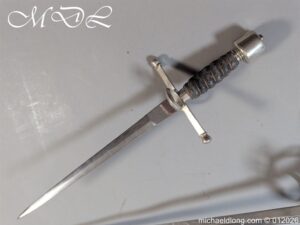 Italian Swept Hilt Rapier and Ensuite Dagger in the style of late 16th century early 17th. The rapier with 2 ring guard, long straight quillons swollen towards the ends. The 93cm double edged, the dagger with matching design to pommel and grip, straight quillons with circular hoops. The blade again double edged, length 36cm. Overall lengths, Rapier 112cm Dagger 49cm both have been chrome plated and high-quality reproduction display items.