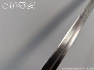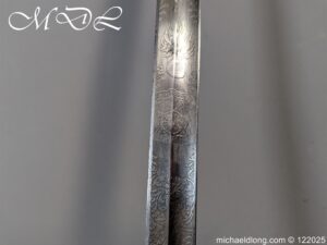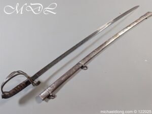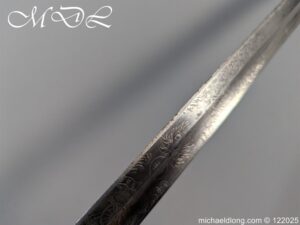 Lieutenant General Sir James Hills-Johnes VC GCB Royal Artillery Sword. Regulation pattern with 3 bar steel hilt and stepped pommel, the fisk skin grip show wear. The blade again regulation, engraved with regimental devises to both sides, owners initials J H J and crest. Maker marked Pillin London and proof plug, complete with steel scabbard with 2 loose rings. Although we can not confirm this was the actual sword used in the action for which he received the Victoria Cross along with Henry Tombs during the Indian mutiny at the Siege of Delhi it has been field sharpen and shows signs of action.