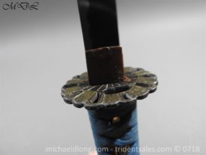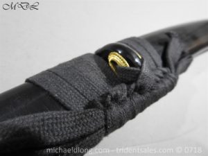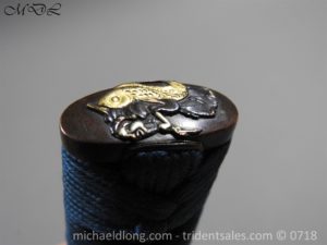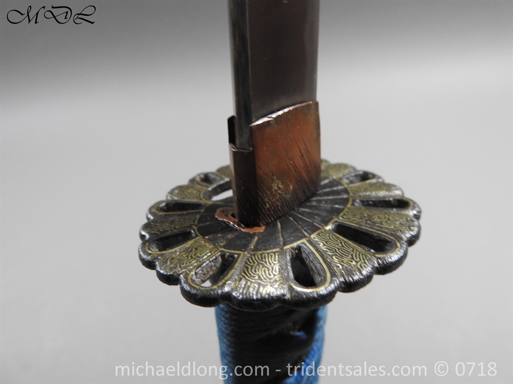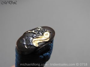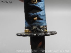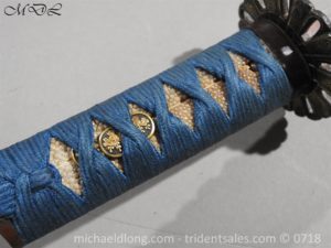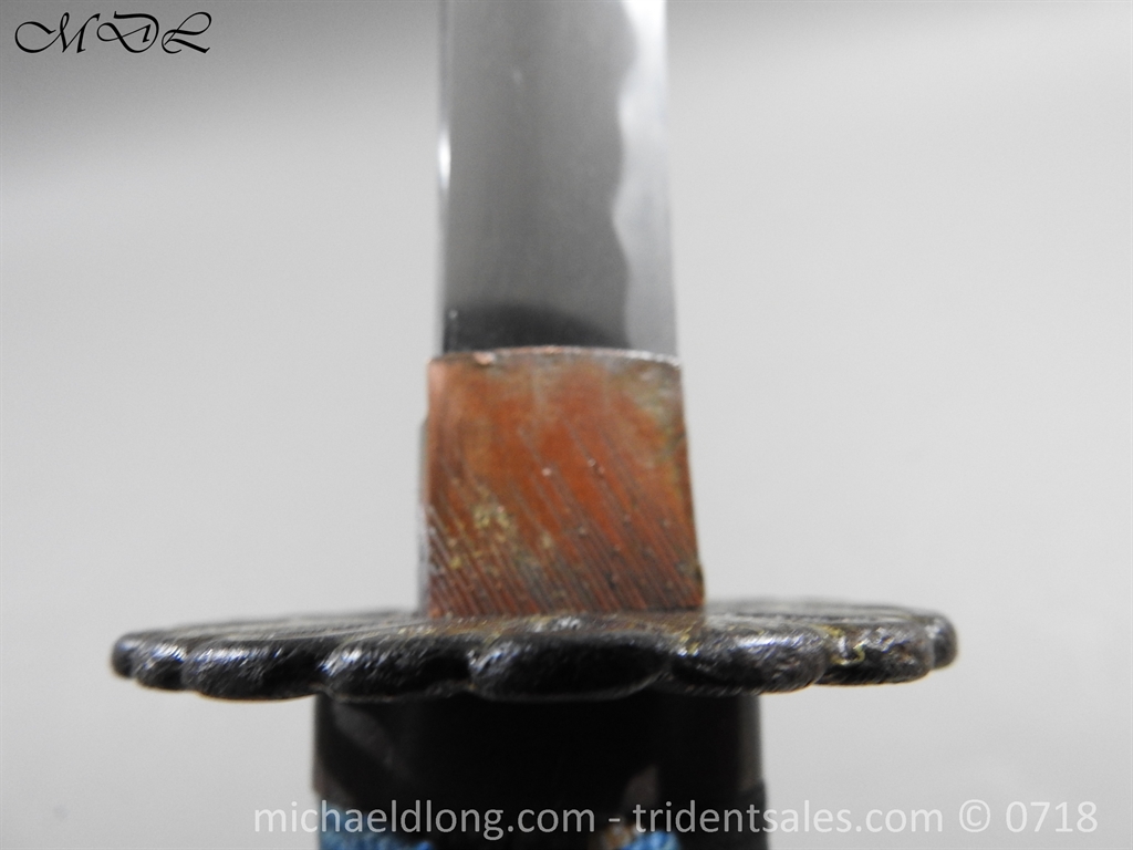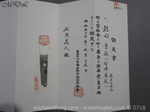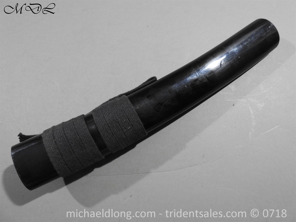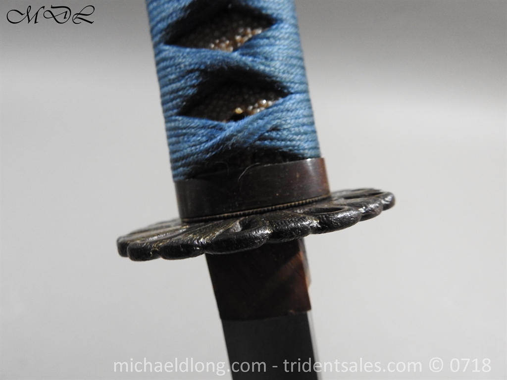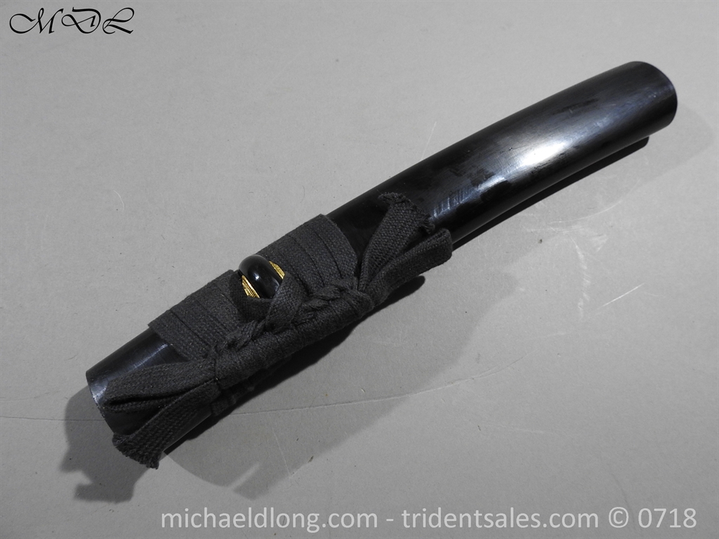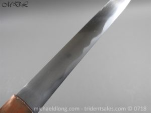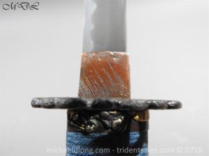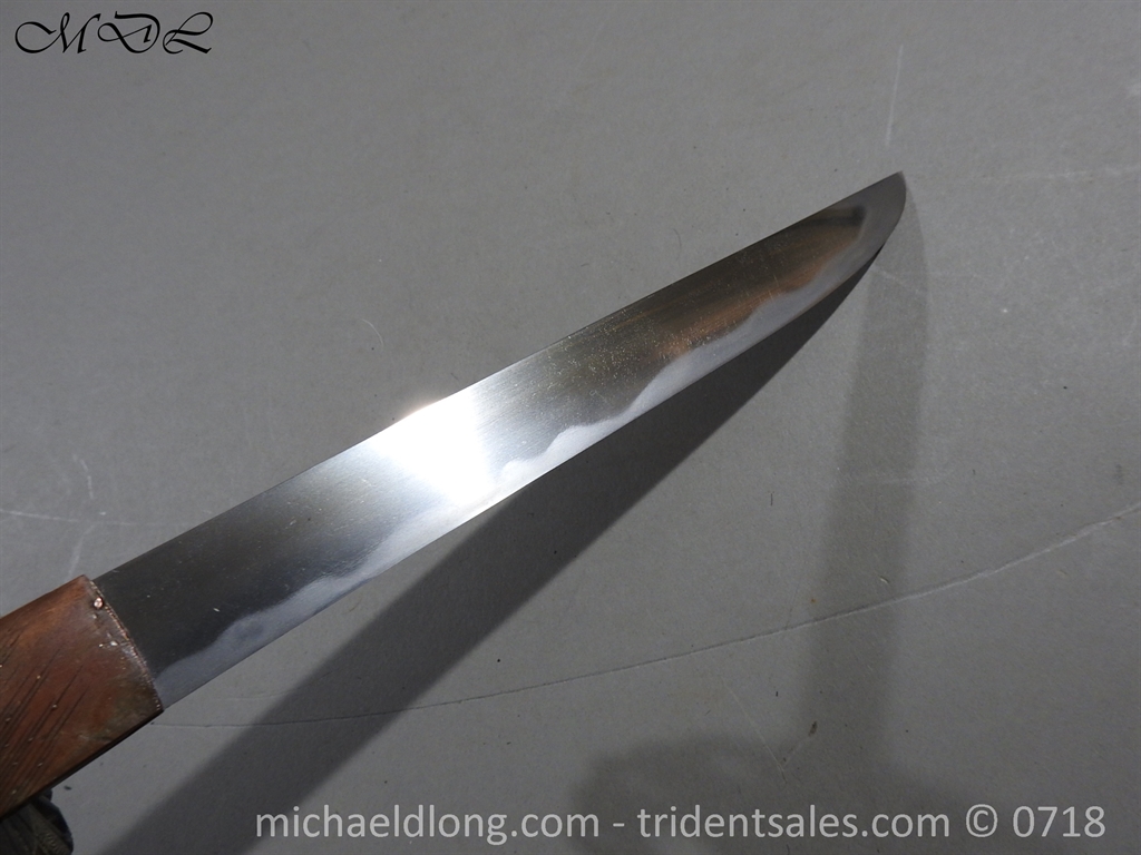 A Japanese tanto c 1865 NBTHK Kicho token papers issued September 1979 unsigned but attributed to Aizu Kanetomo I Mekugi – Ana Copper Habaki, the homon is Gonome – Midare and forging grain is Mokume Hada, super fitting with replcement scabbard and complete with Shira Saya.