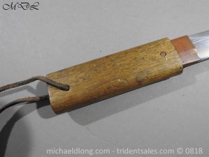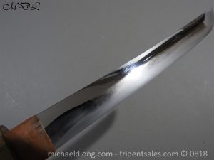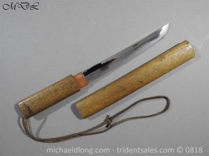 The blade is c 1850 with good polish and a nice hamon, leather neck cord mounted with a wood handle and sheath blade length 19cm overall 32cm