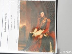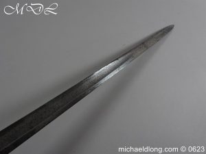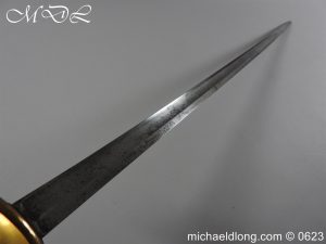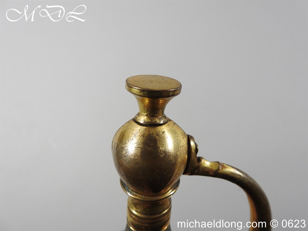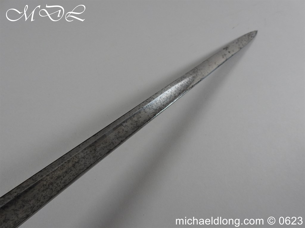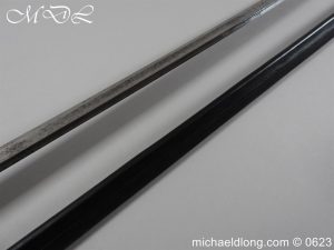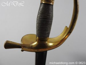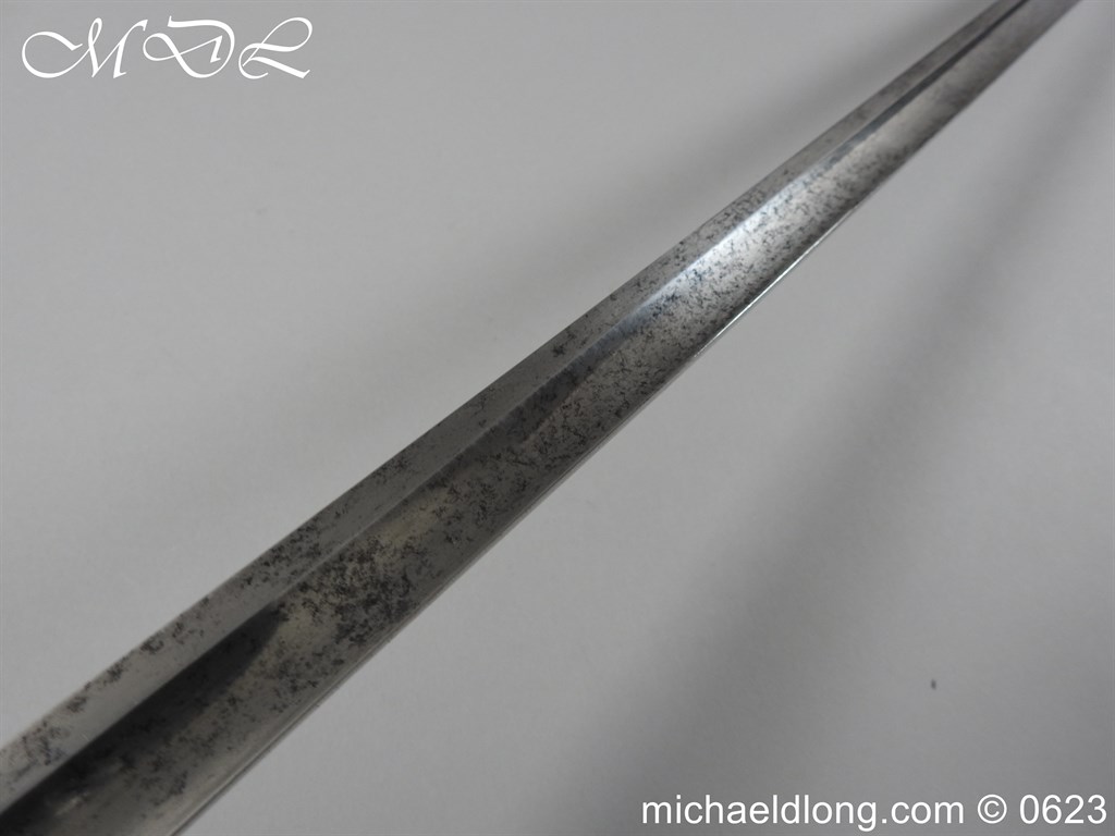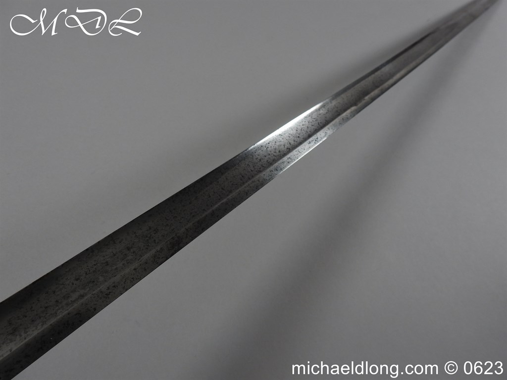 Life Guards Officer’s Full Dress Sword belonging to Joseph John Lakehurst Peyton 1819 – 1844, 89.75cm plain fullered blade, modified regulation copper gilt hilt with wire bound grip, contained in its copper gilt mounted black leather scabbard, the upper mount bearing maker’s tablet and engraved with owners entwined initials in script. Scabbard leather restored. Joseph John Wakehurst Peyton (1819-1844) 2nd Life Guards: Coronet and Sub-Lieutenant (by purchase) 28th April 1836, Lieutenant by Purchase 8th June 1838. This sword is detailed in the book The British Cavalry Sword by Richard Deller plate 20.36 and sold with extensive research