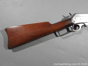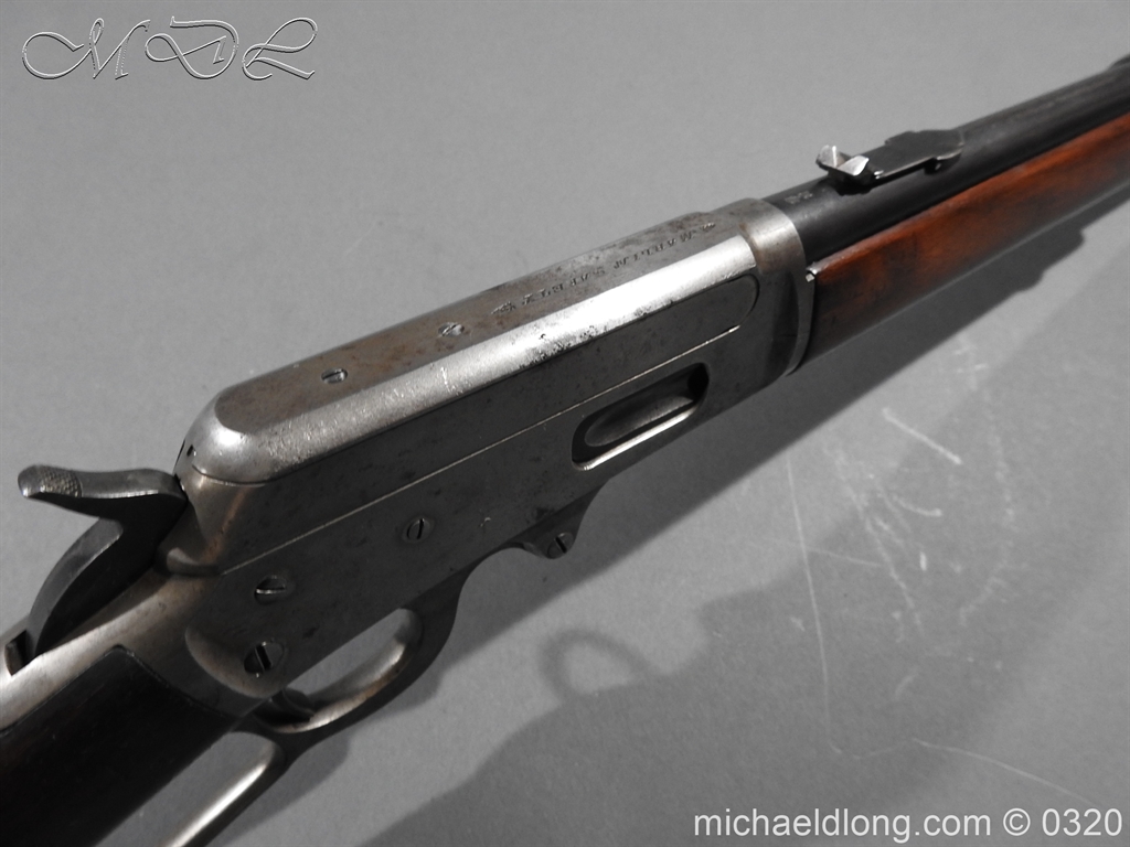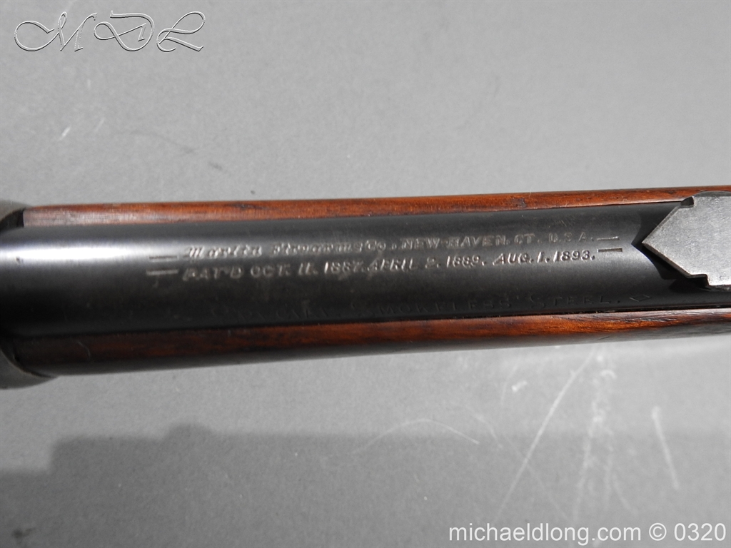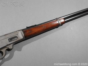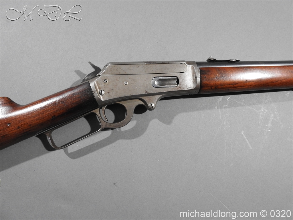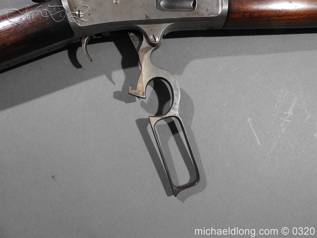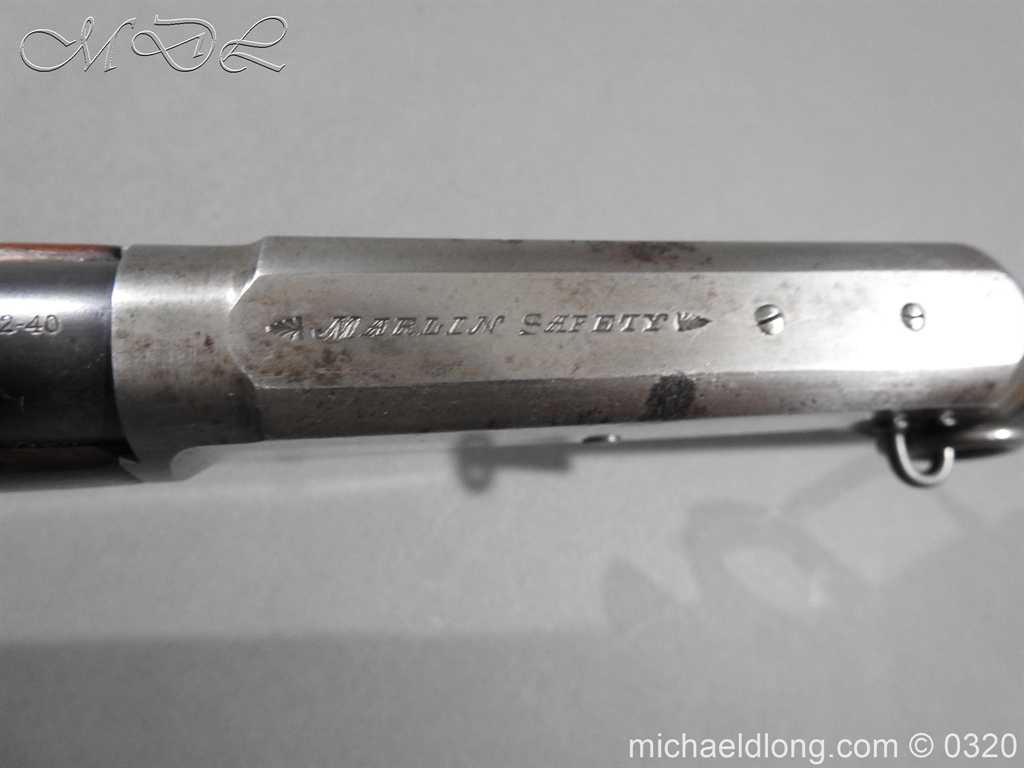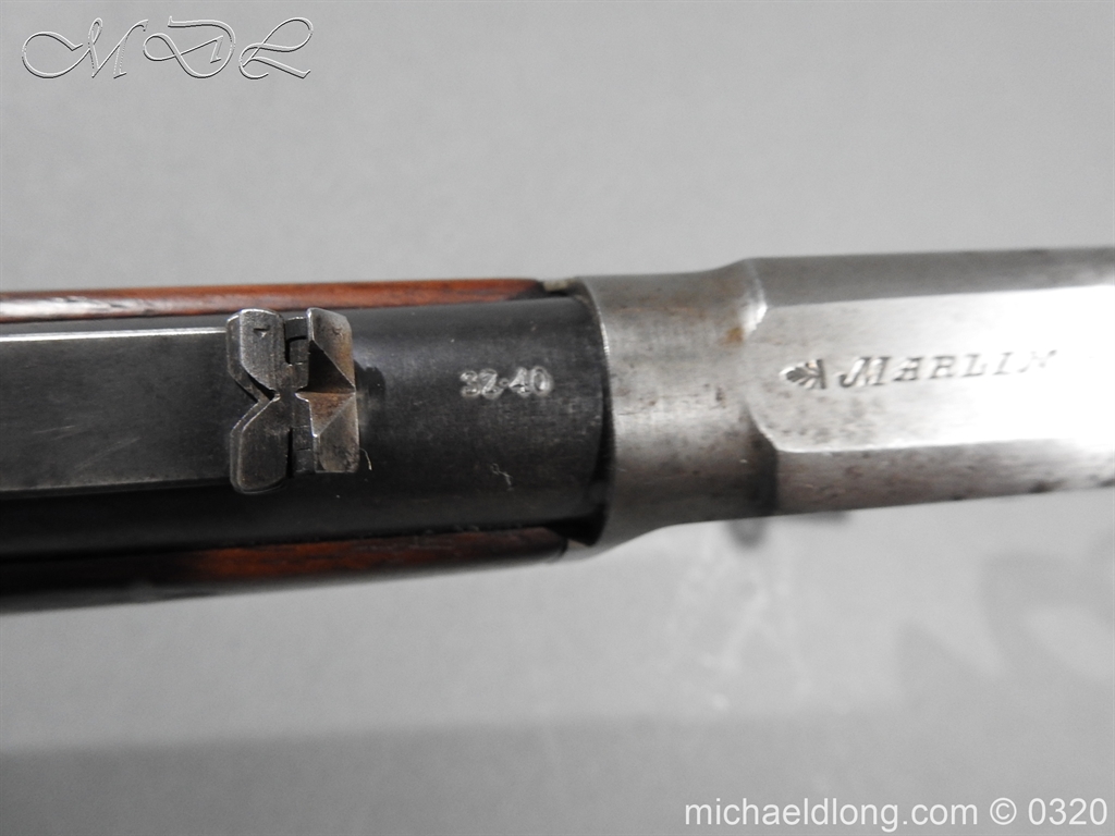 Marlin 1893 32 – 40 Lever Action Rifle in full working order and with good bore. Serial No 422289 round barrel with crisp address and Pat’d plus full length tube magazine. The woodwork in good condition age wear but no splits or cracks, the frame with saddle ring and stamped Marlin Safety plus tang marked model 1893.