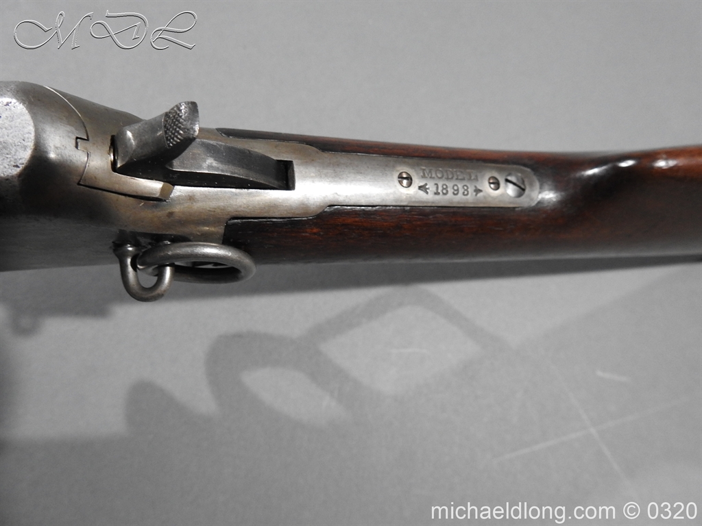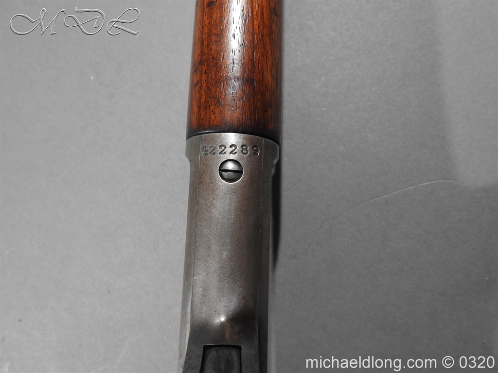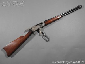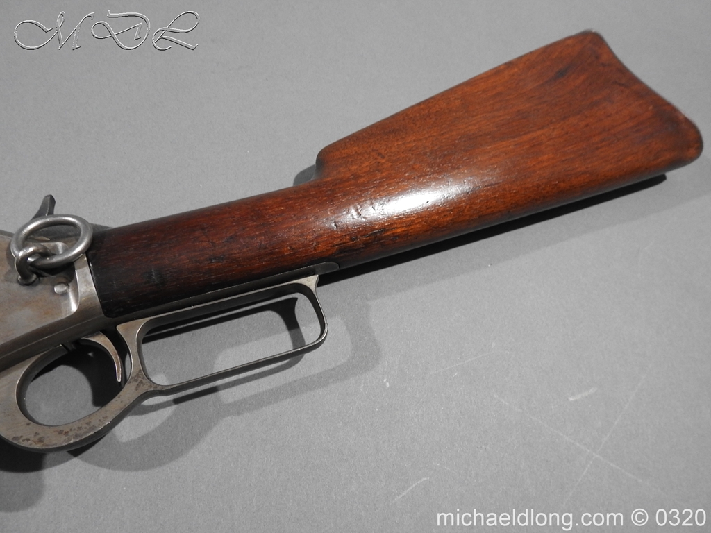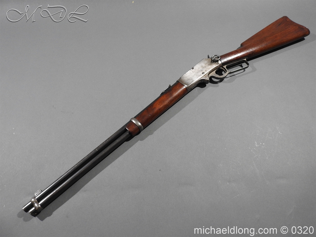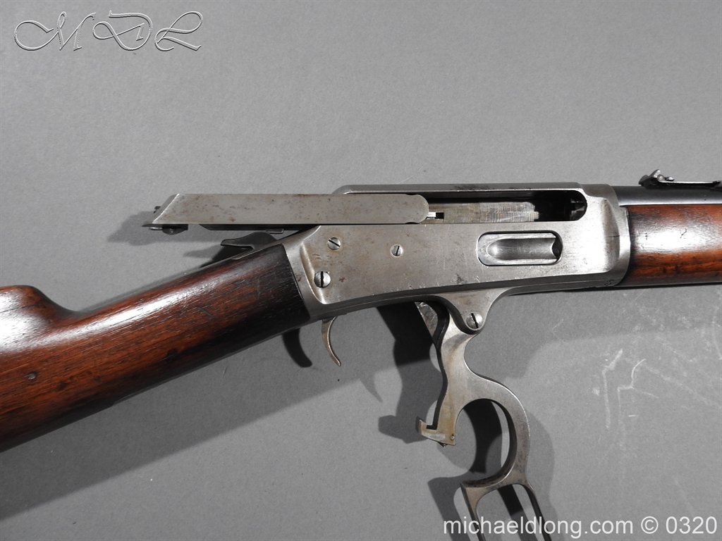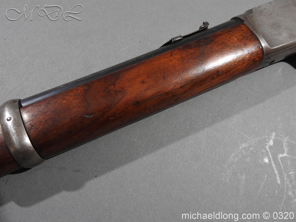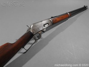 Marlin 1893 32 – 40 Lever Action Rifle in full working order and with good bore. Serial No 422289 round barrel with crisp address and Pat’d plus full length tube magazine. The woodwork in good condition age wear but no splits or cracks, the frame with saddle ring and stamped Marlin Safety plus tang marked model 1893.