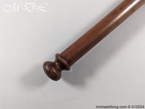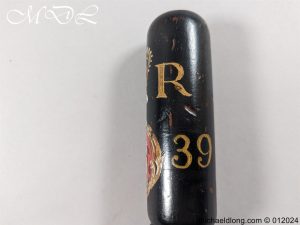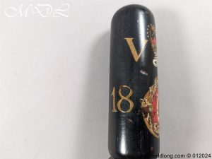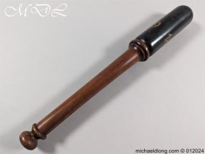 Oakham and Uppingham Police Truncheon Dated 1839 good shape black pained head with VR Crown and Oakham crest plus date 1839. Turned wooden grip all in very good condition age marks to paint overall length 13 inches the head 5 inches