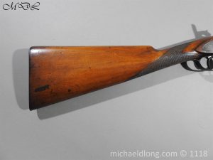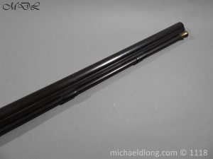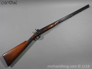 In good condition 29 inch barrel half stocked, all metal work with age brown pitina, lock with floral engraving and maker marked Mortimer Matching engraving to hammer, trigger guard and butt plate, woodwork with age bruises but overall fine, In full working condition. Free UK Mainland Shipping only