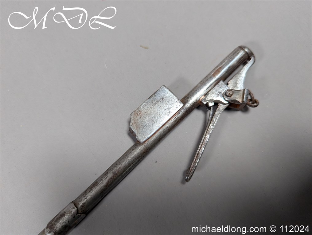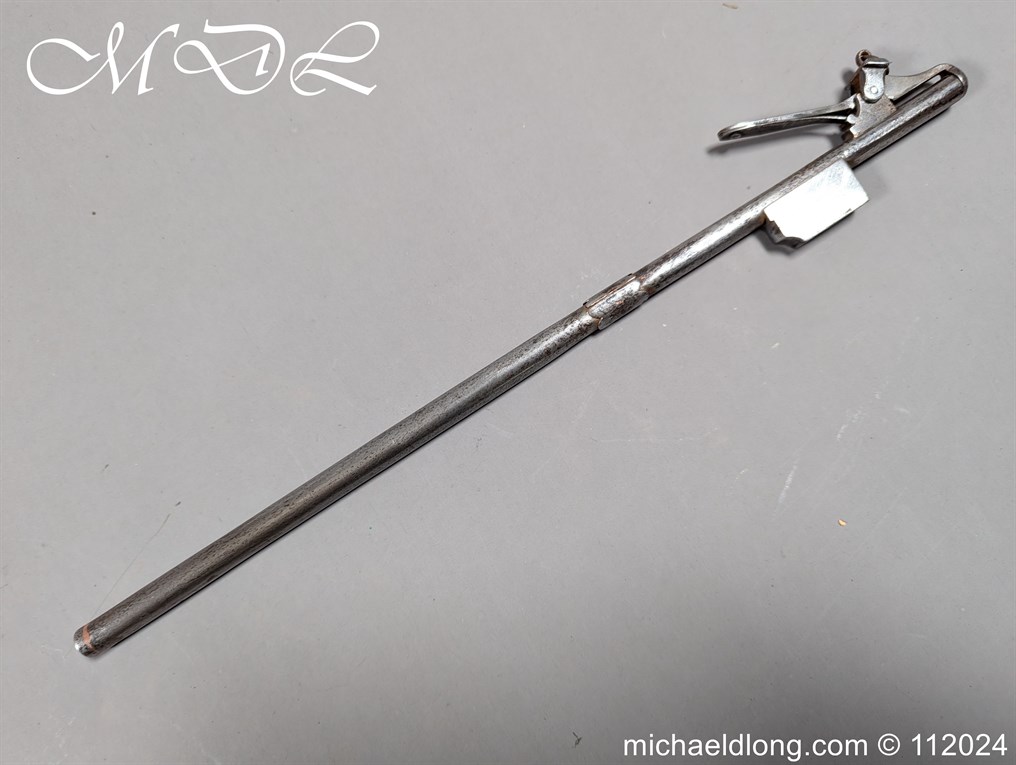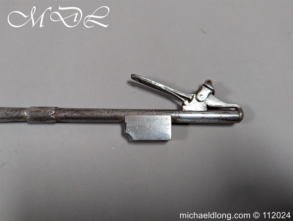 Pistol Combination Spanner, Ramrod and Priming Flask c 16th century very rare example, a similar one detailed in the book Landeszeughaus Graz, Austria, Wheellock Collection by Robert Brooker. The description as follows pistol combination spanner, ramrod and priming Flask. Left end is threaded for a cleaning tool, must likely Nurnberg, Augsberg. This combination tool is rarely found, Landeszeughaus has 10 examples. Please note this this example is not threaded for a cleaning tool, overall length 34cm spring in working order