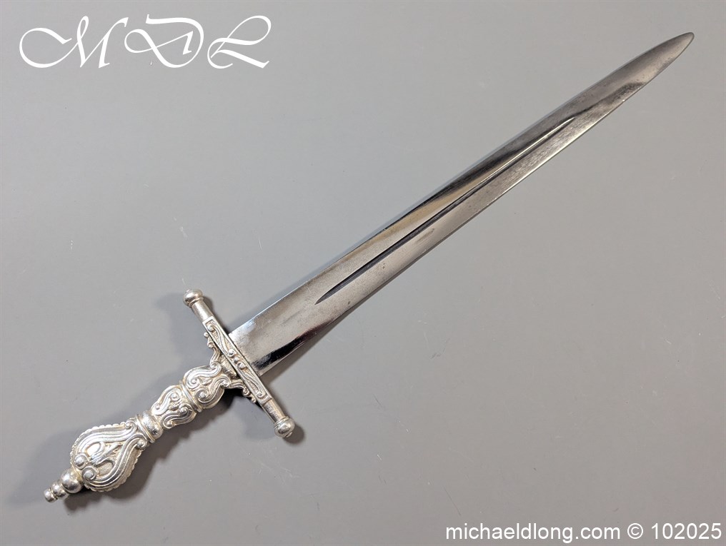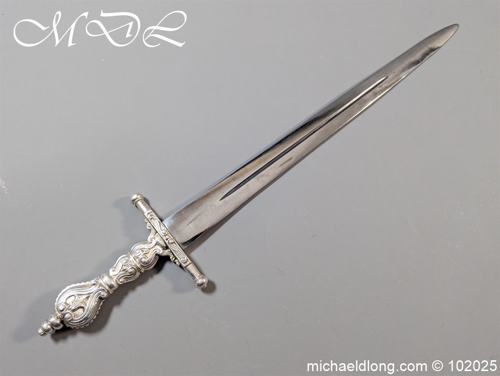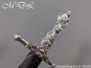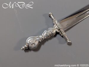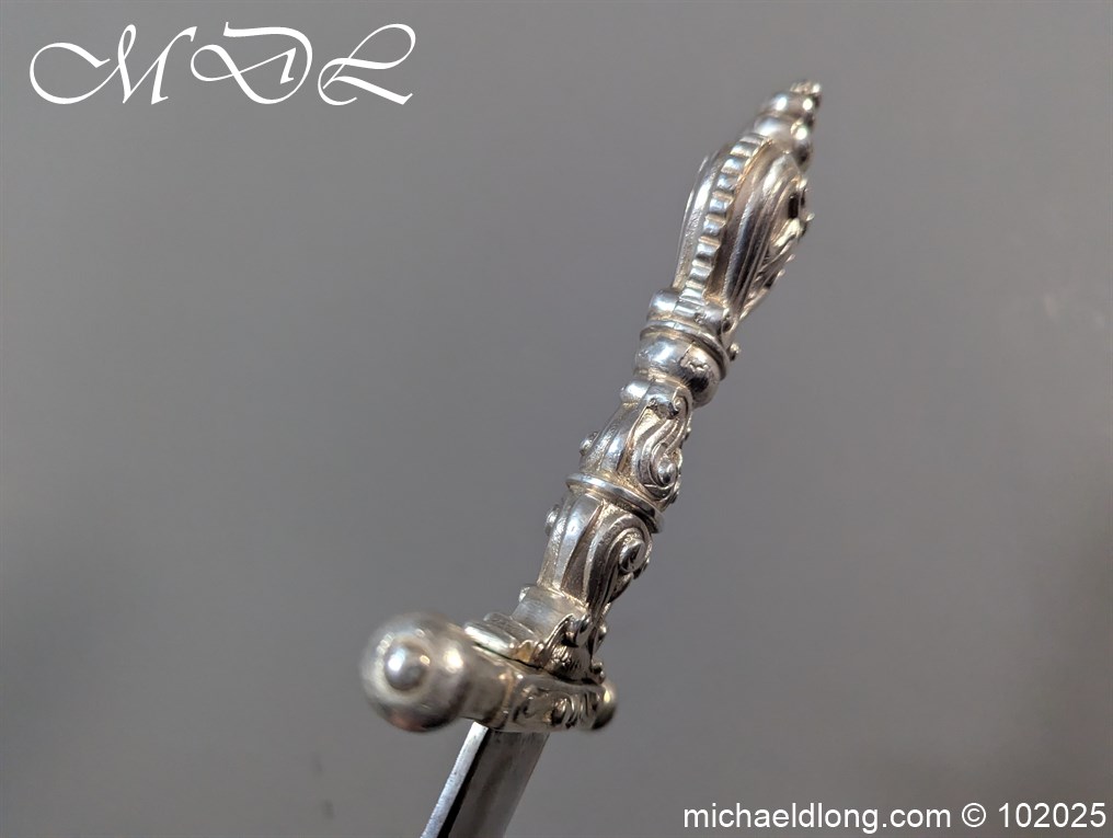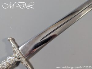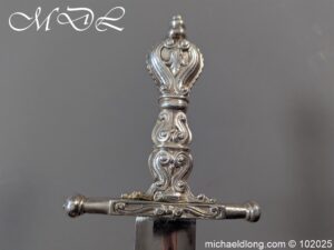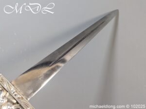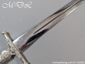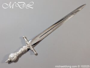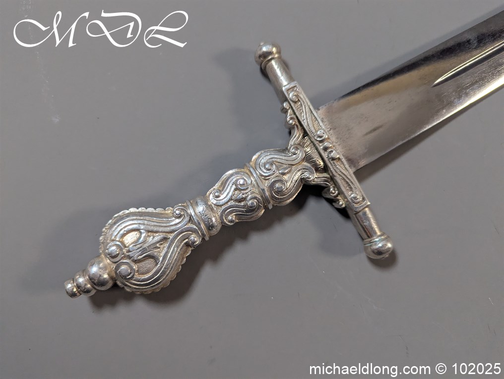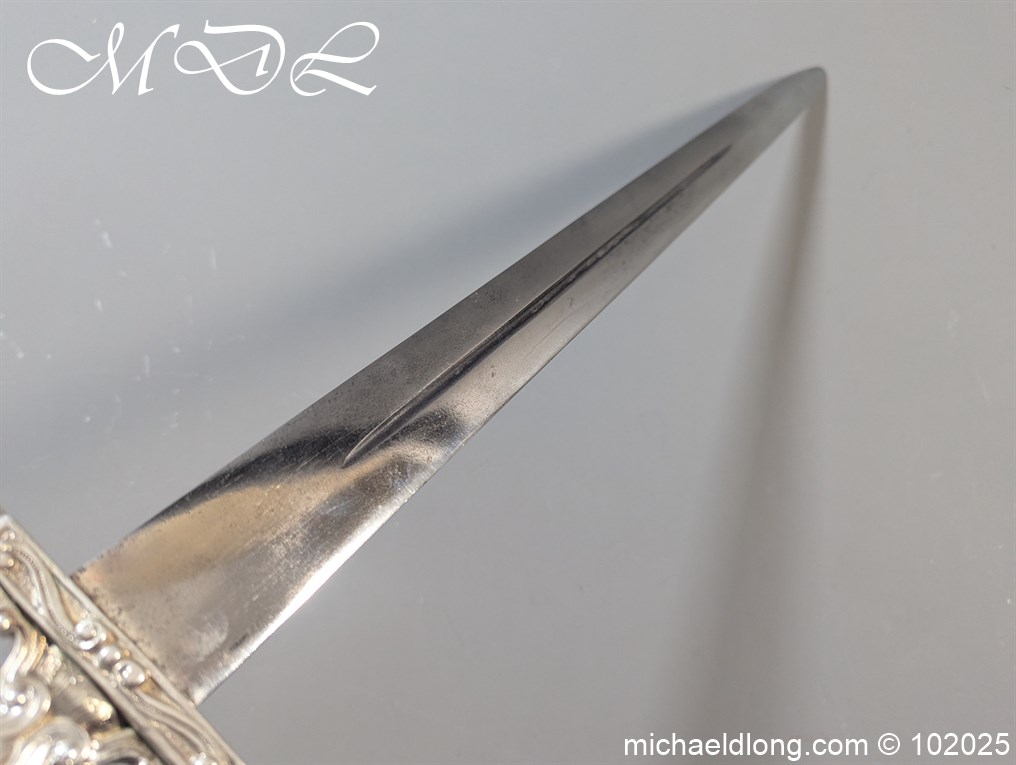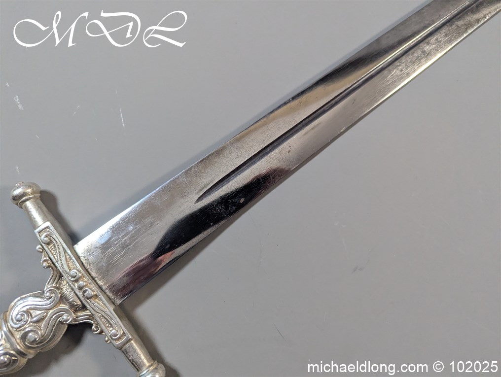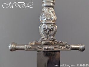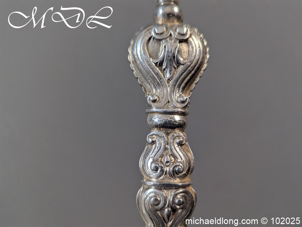 Royal Company of Archers Sword. The hilt which would have been brass is embossed with scrolls and straight matching cross guard however this sword has ben totally silver plated including the blade maybe as a presentation item. Overall length 26 inched the blade 20 inches