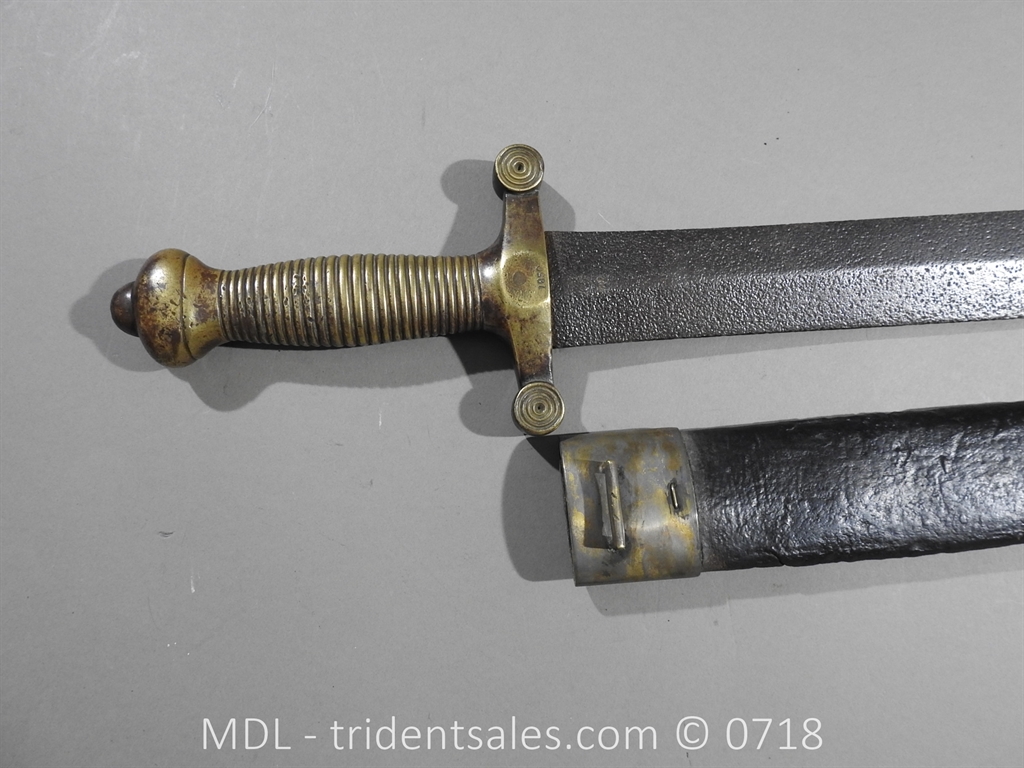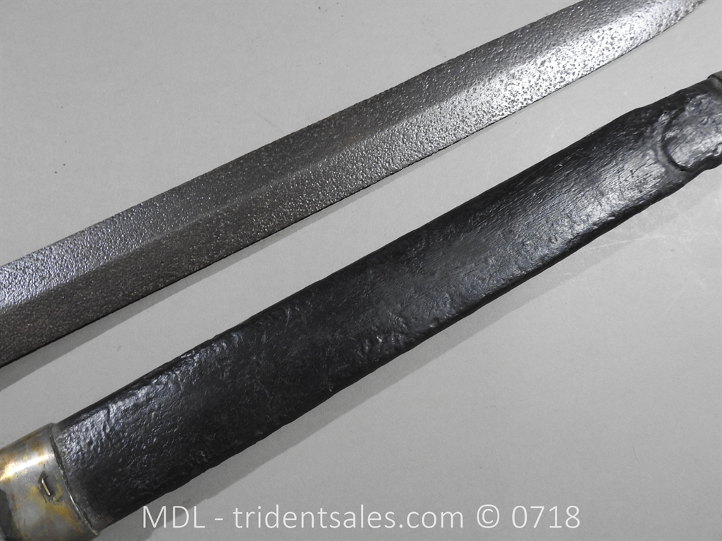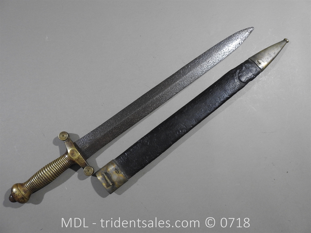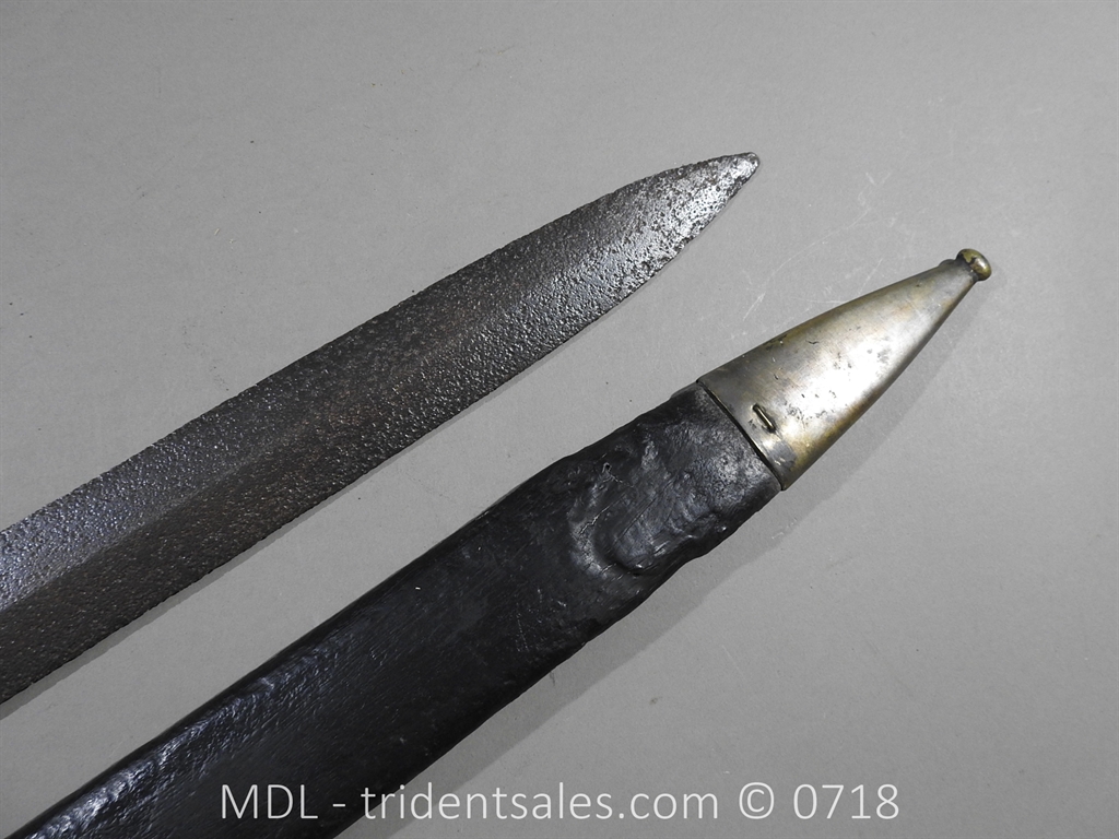 Imperial Russian Crimea war issue Gladius with brass one piece grip, crossguard and pommel. Centre of crossguard marked on one side with Imperial Eagle and date 1850 with encircled ‘V’ and’C1’ on the other. Steel Gladius blade in its black, brass mounted French 1831 scabbard. Length 628mm Blade 480mm please note condition of blade and scabbard repair
