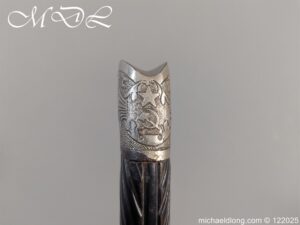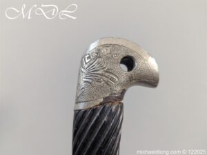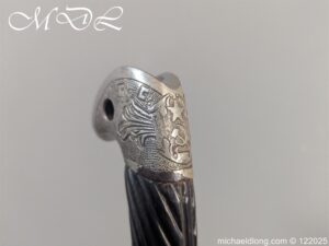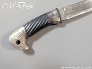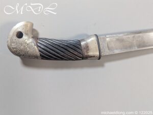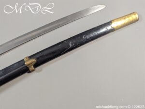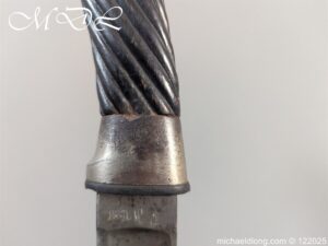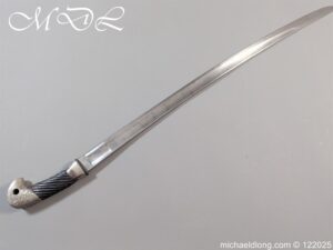 Russian Cossack Shasqua 1881 Troopers, this example post Russian Civil War with the Soviet Star and Hammer plus sickle symbol of the Soviet Socialists Republic to the hilt pommel which is plated. The scabbard adapted to carry Moisin Nagant 1891 socket bayonet later type with spring catch, the blade with various stamps and marks.