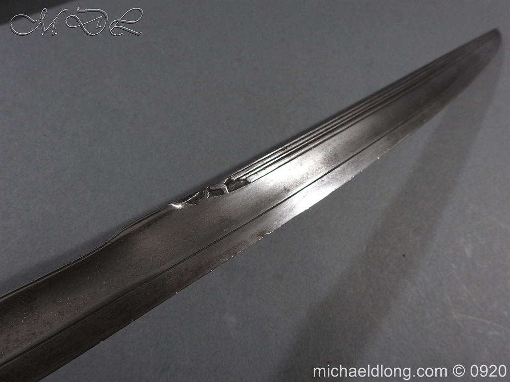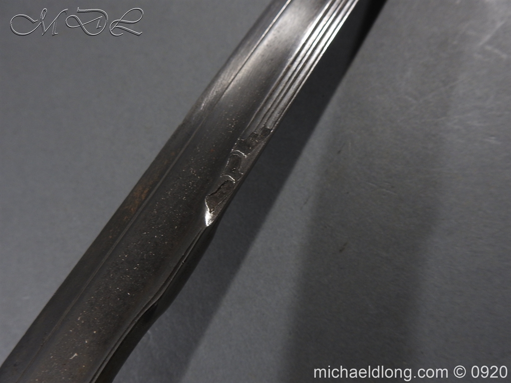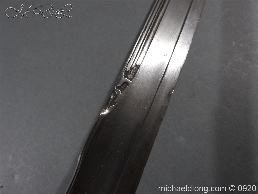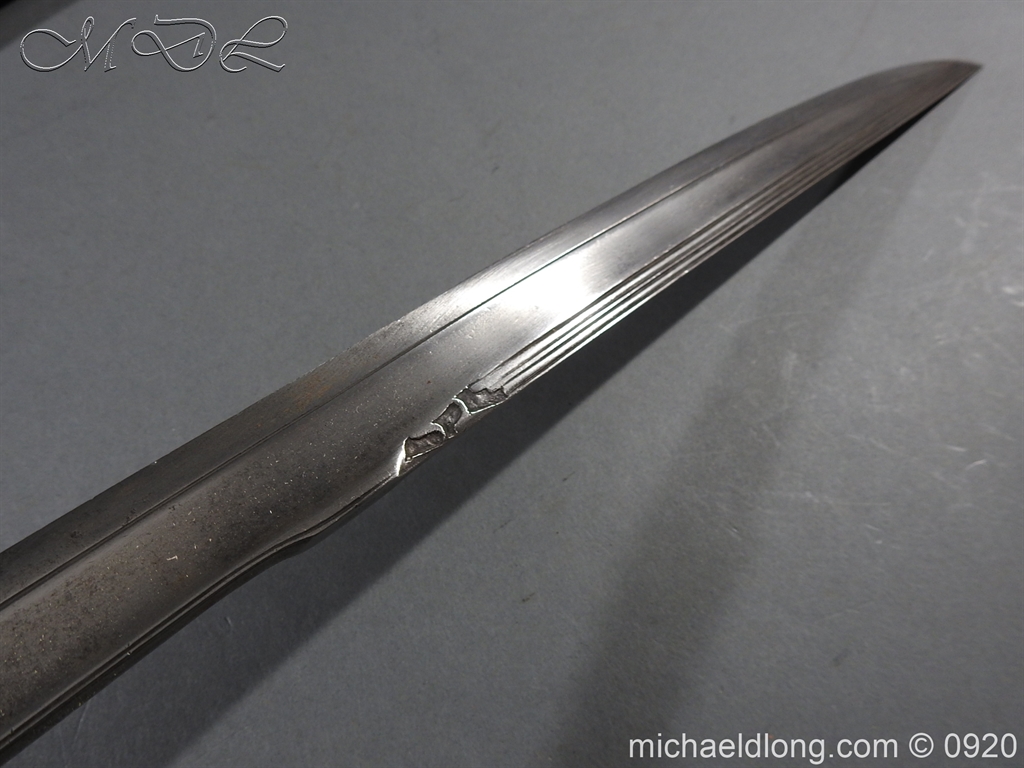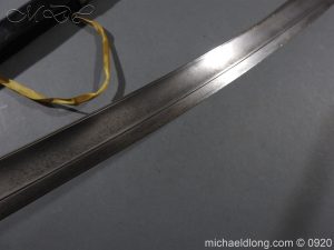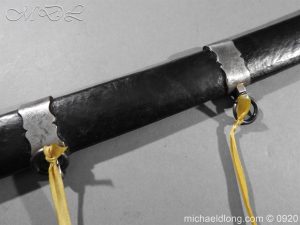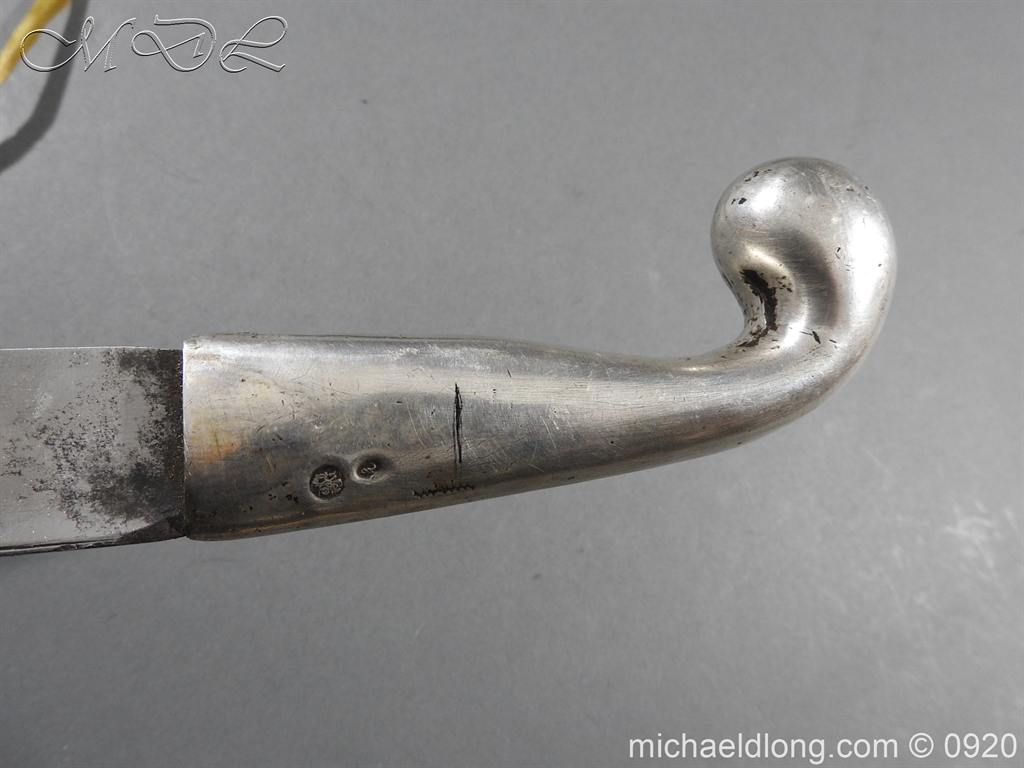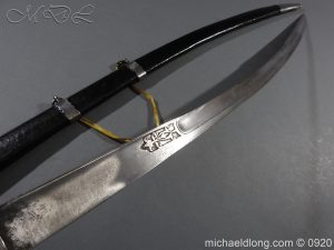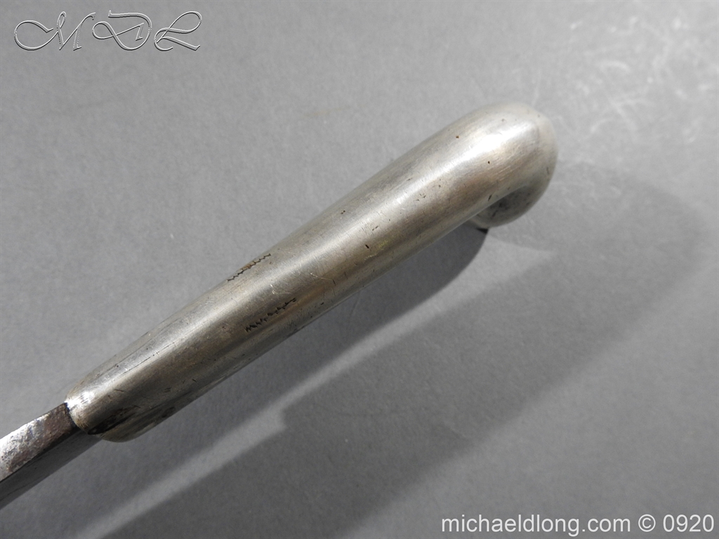 Russian Silver Mounted Shashqua, traditional form of hilt in silver with either hallmarks or makers marks. The blade slightly curved with deep chiselled decoration and clip back point with multi fullers running to the tip. The scabbard black leather with steel mounts which have been cleaned is in good solid condition it is possible that the leather has been replaced within it’s life time overall length 99cm 39 inches the blade 86cm 34 inches