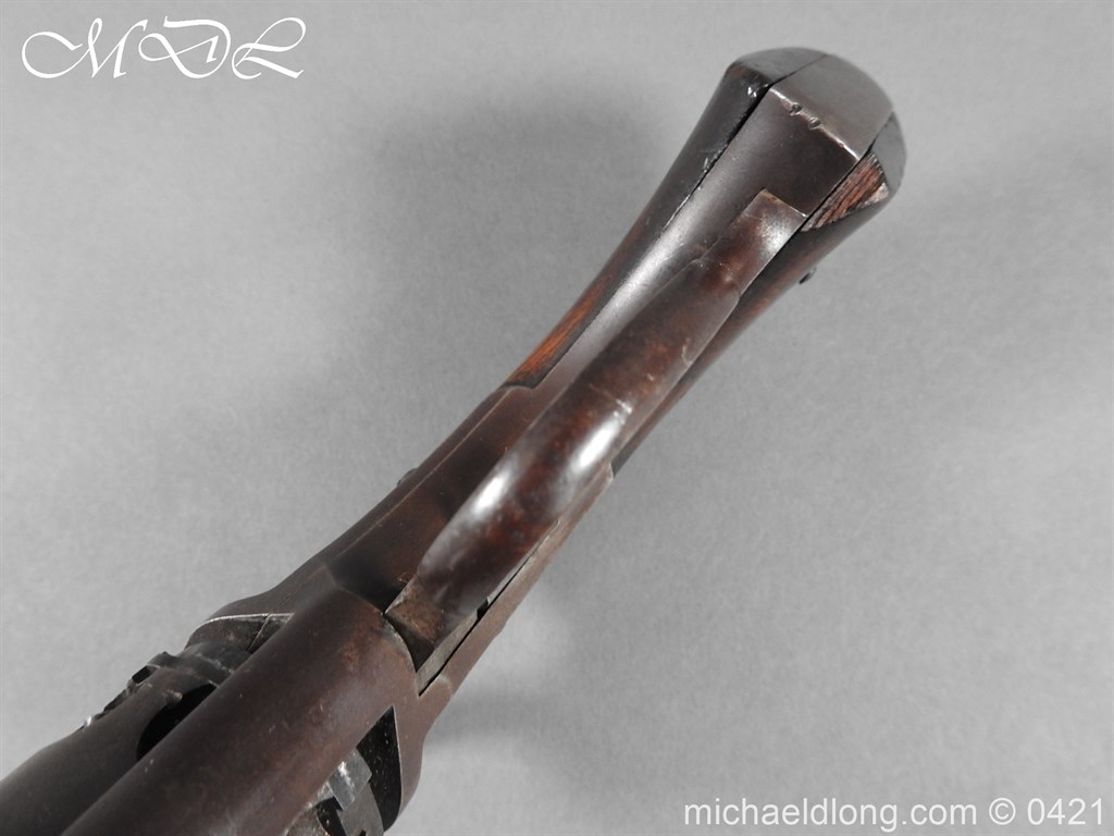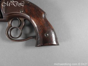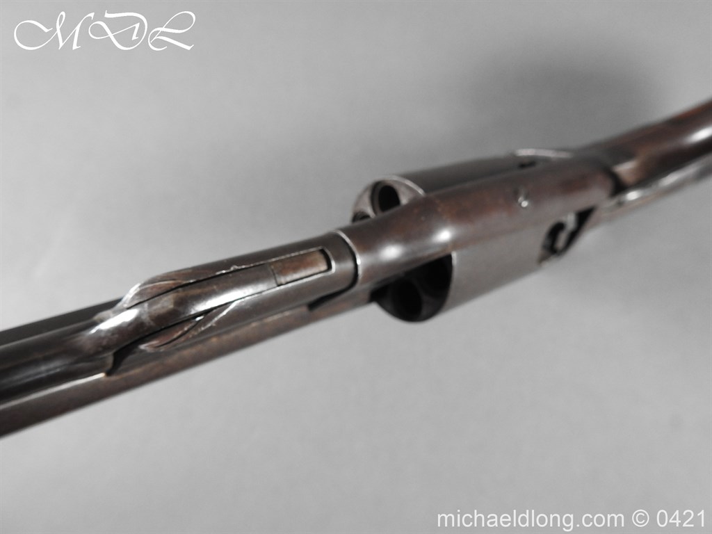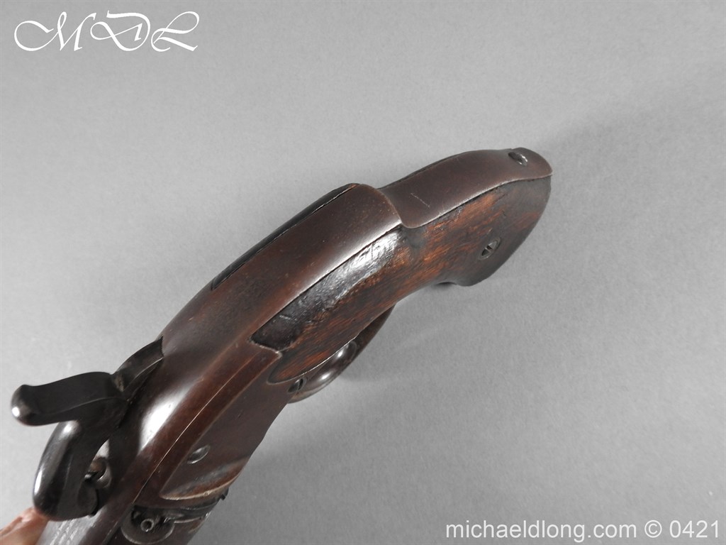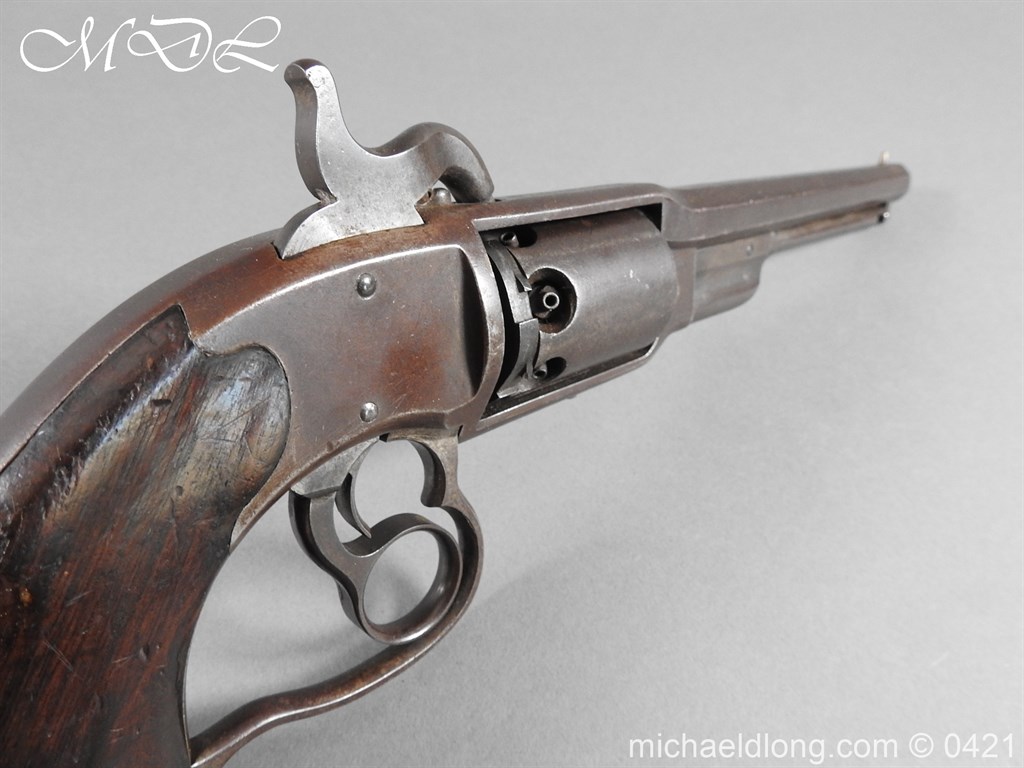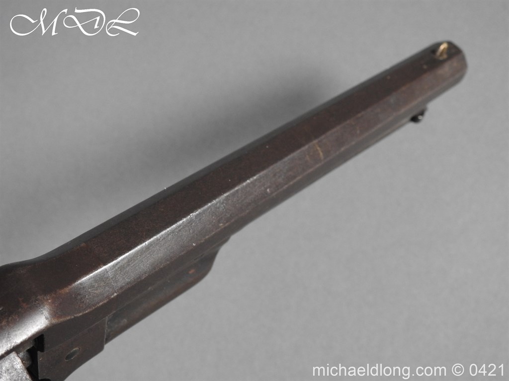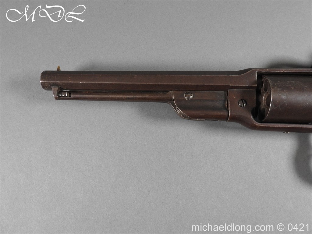 Percussion Savage Firearms Co. Navy Model Six-Shot Revolver, Circa 1860. With russet octagonal sighted barrel, top-strap, bevelled frame and spurred butt all in one piece, the top-strap stamped, ‘Savage R.F.A. Co. Middletown. Ct. H.S. North Patented June 17 1856 January 18 1859 May 15 1860’, russet cylinder, ring cocking-level within the trigger-guard, rammer with sprung catch, shaped figured grips brown patina overall. The trigger doesn’t hold on full cock.