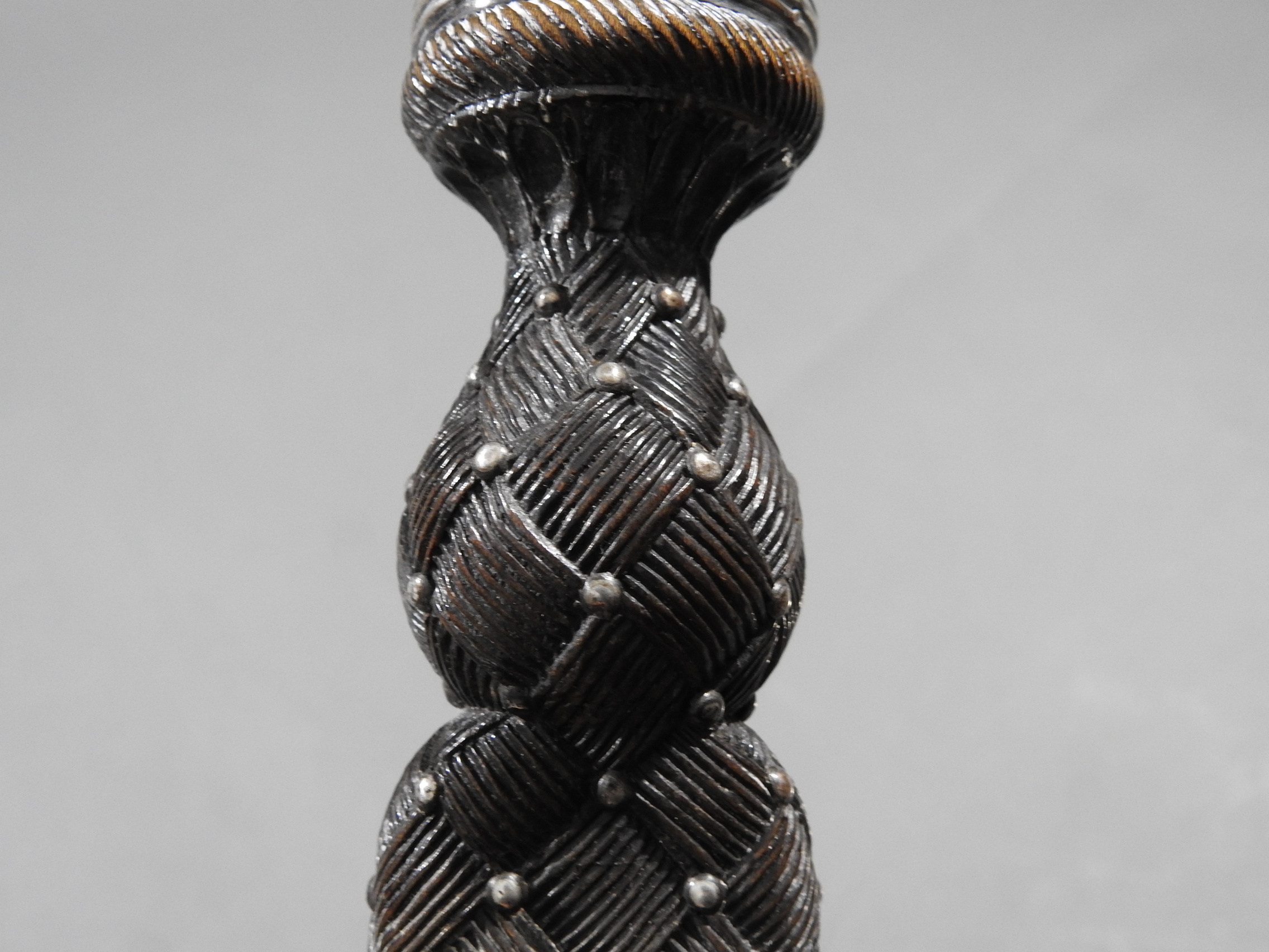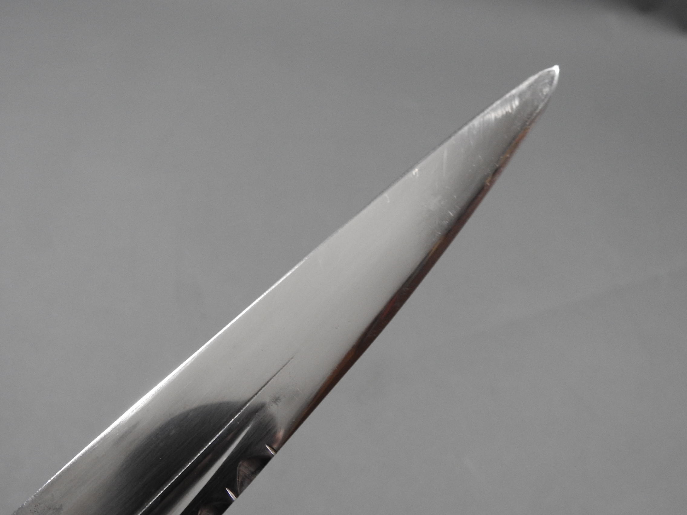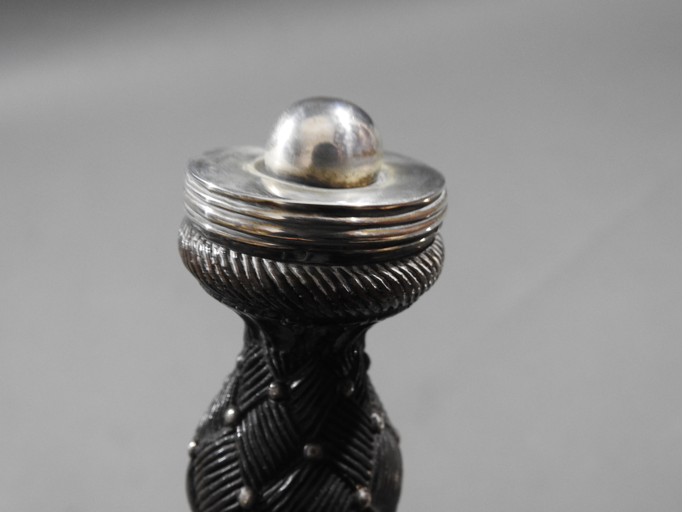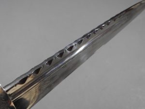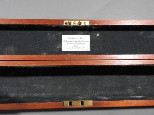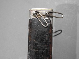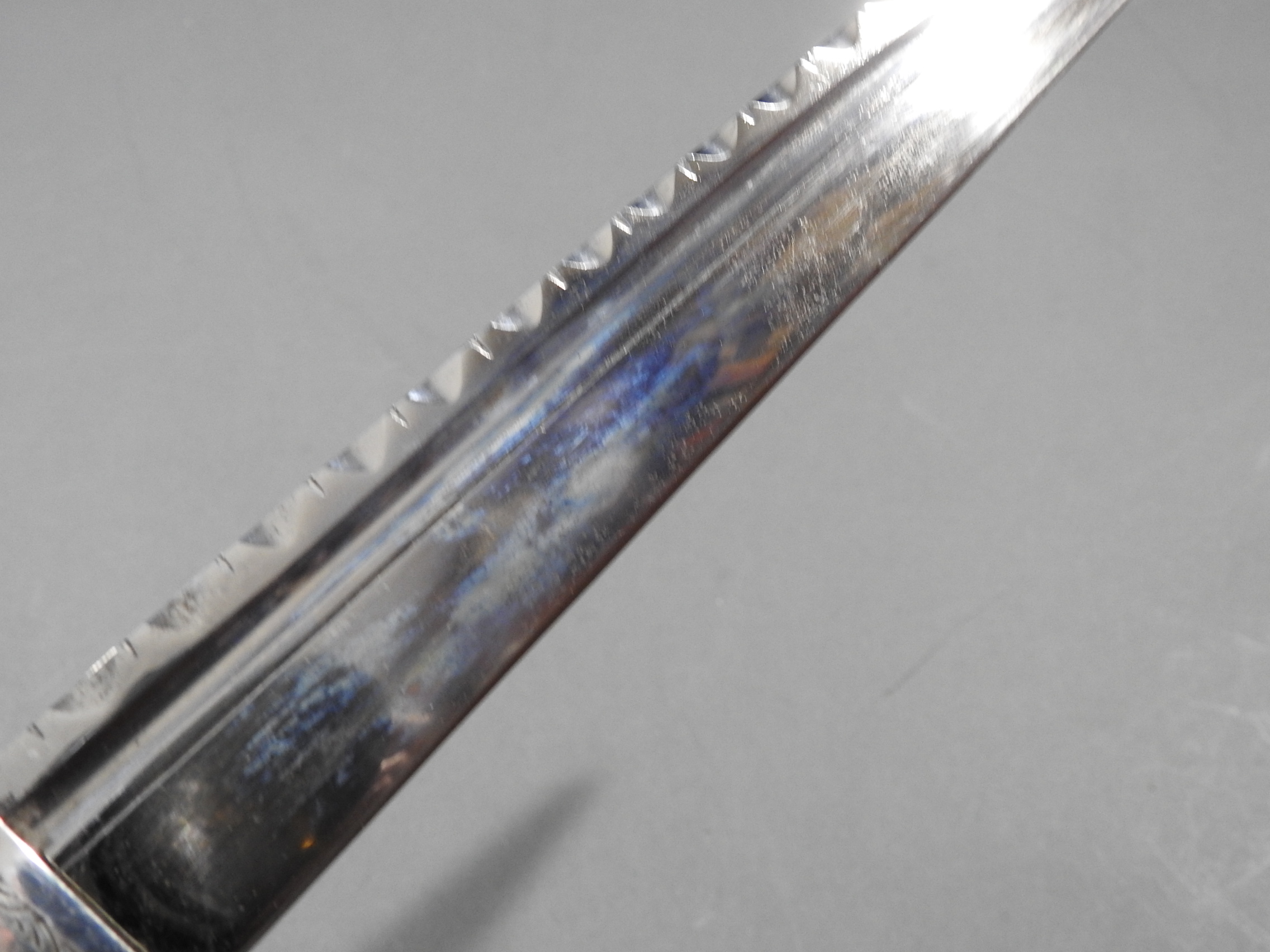 Excellent presentation dirk with the following inscription, Presented by The Northern Meeting to John Macbean Piper to Lord Middleton for best performance of Strathspeys and Marches on the Great Highland Bagpipes Sept 1869. With silver engraved mounts not hallmarked but do test for silver, complete with matching knife and fork, studded curved hilt with silver pommel and contained within velvet linned wooded box with makers label William Ross