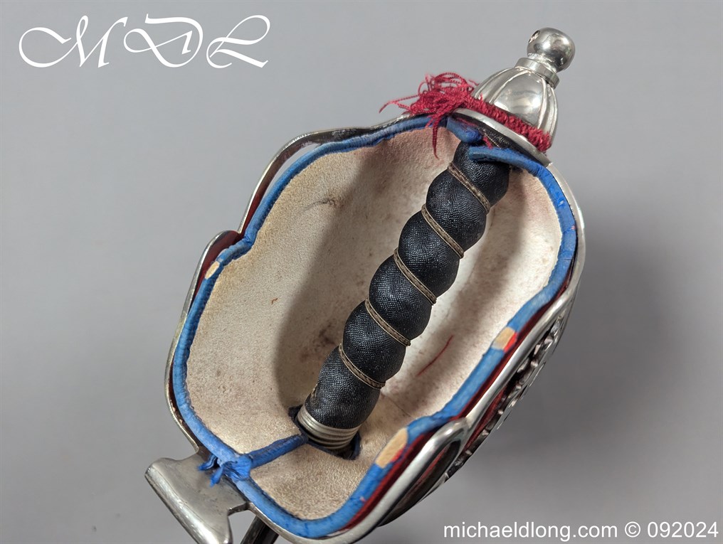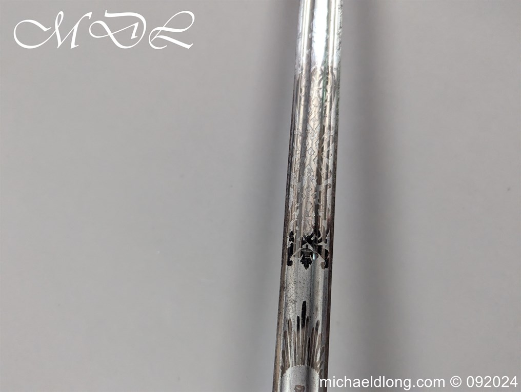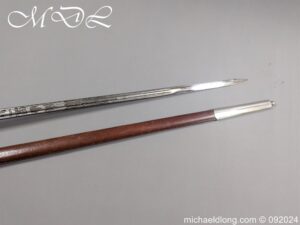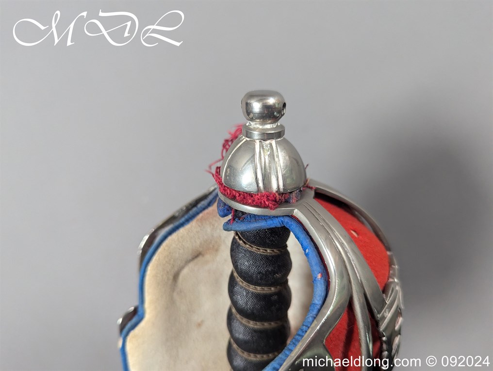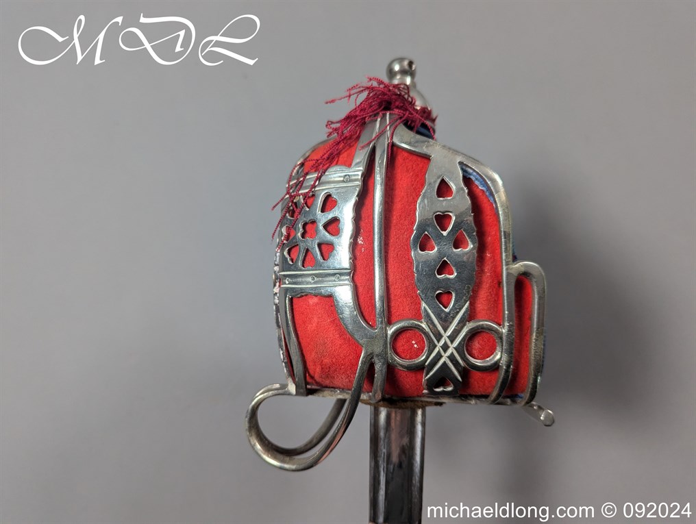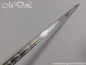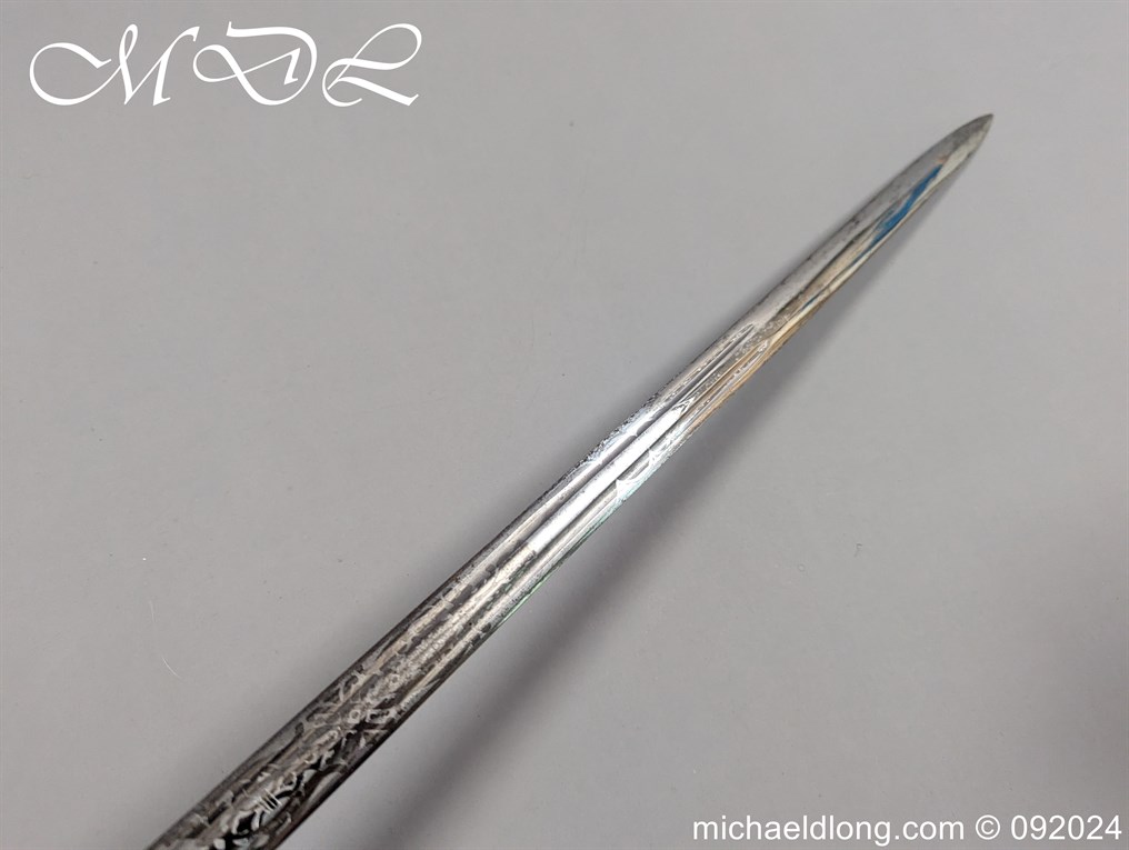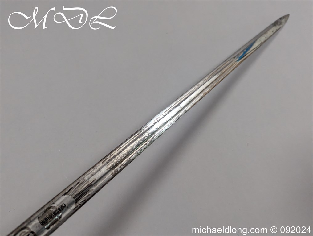 Scottish WW2 or WW1 Blackwatch Officer’s Sword. The sword with regulation hilt and complete with liner and fringe all in good condition. The broad sword blade with good etching including G R V Crown to one side the reverse with crown and regimental devises plus Blackwatch Royal Highlanders and brass proof plug. The scabbard field service in again nice condition with steel polish drag, for reference please see Swords of the British Army Revised Edition Page 160 Blade Length: 81.5cm Overall Length: 100cm