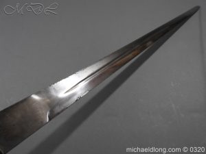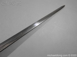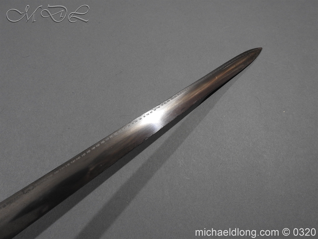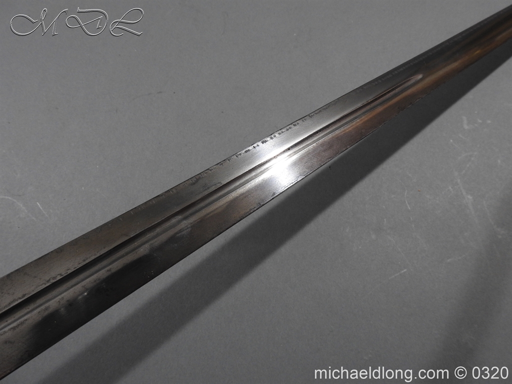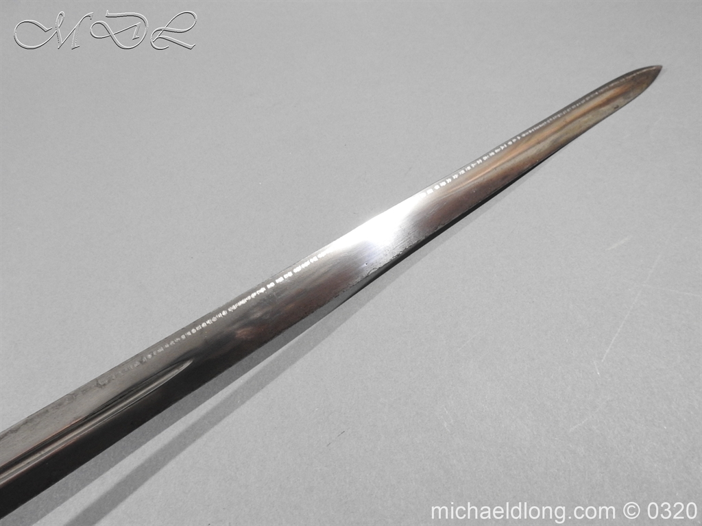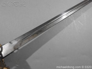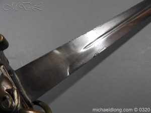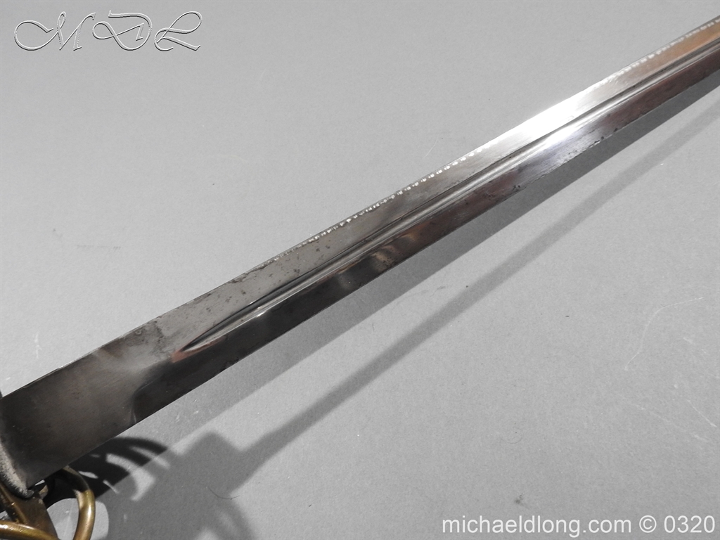 Scottish Officer’s 1798 Pat Broad Sword, brass basket hilt sword introduced to the Scottish Highland regiments in 1798 and only replaced by the regulation 1828 pattern sword so this pattern of sword was used throughout the Napoleonic War period. The brass basket fitted with wire bound fish skin grip and dome pommel. Straight double edged broad sword blade with short central please note one front bar slightly bent not uncommon on brass basket hilt swords overall length 99cm blade length 84cm