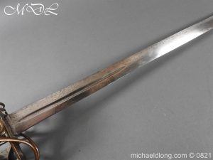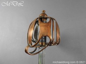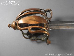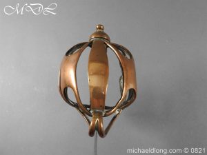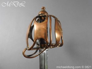 Good example of a Scottish Officer’s 1798 Pat Broad Sword, brass basket hilted sword introduced to the Scottish Highland regiments in 1798 and only replaced by the regulation 1828 pattern sword so this pattern of sword was used throughout the Napoleonic War period. The brass basket fitted with wire bound fish skin grip and dome pommel. Straight double-edged blade with short central fuller