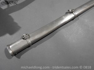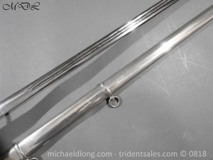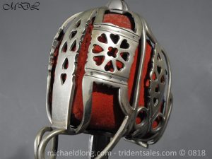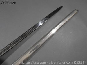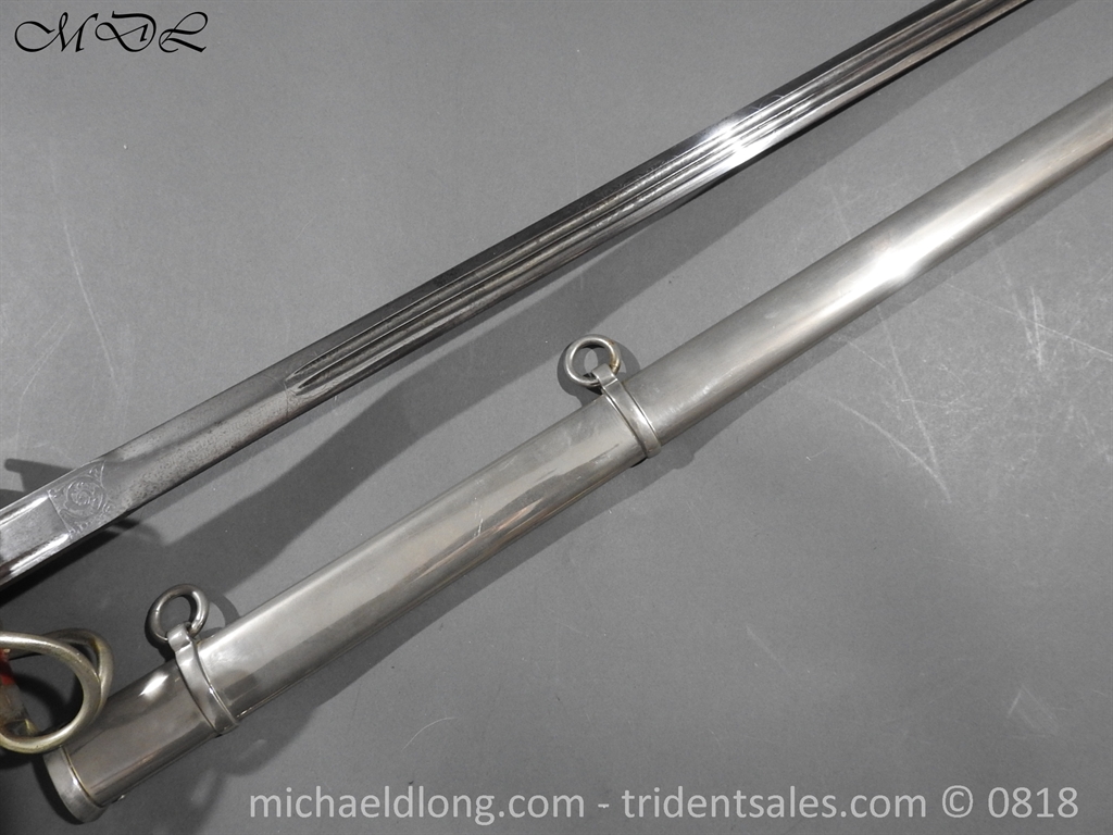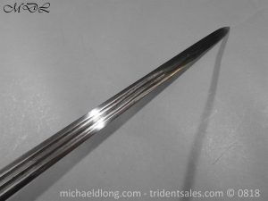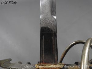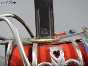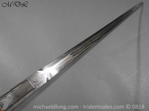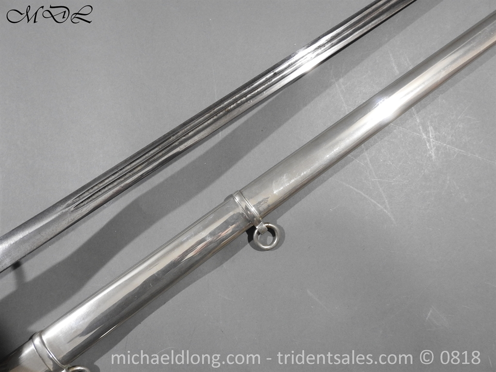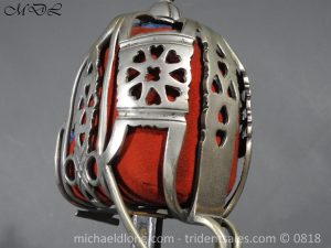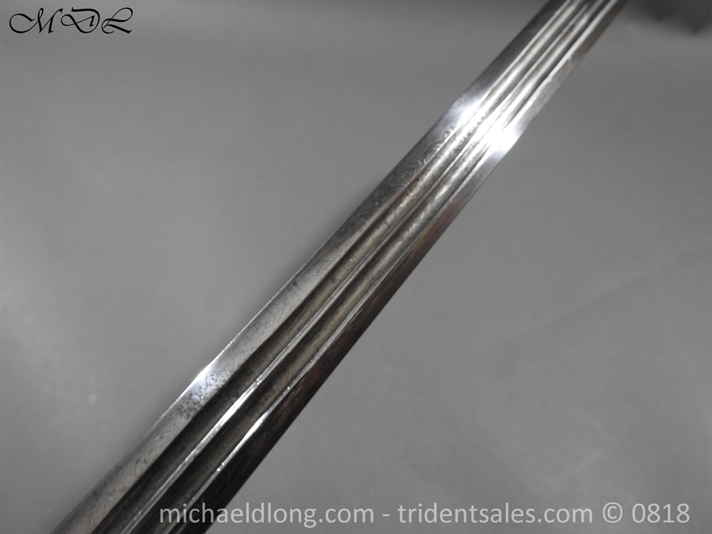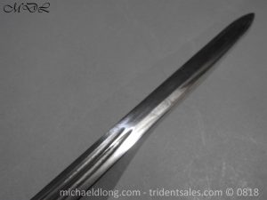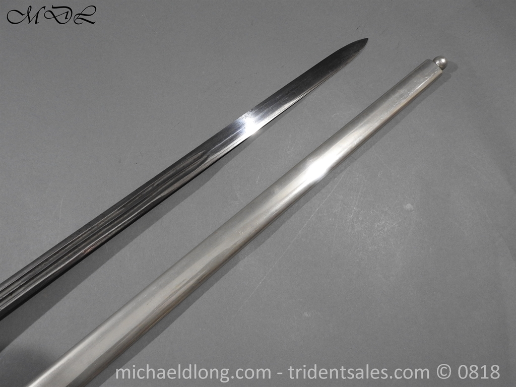 Regulation pattern broadsword steel basket with original liner, wire bound fish skin grip double edged blade in etched with crown GR V thistles and decoration plus proof mark. In addition presentation panal which states, Presented to Lieut James Cruickshank Smith City of London National Guard 1915 the reverse with a further inscription but to faint to read complete with parade scabbard Length 100cm blade length 81cm