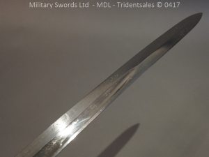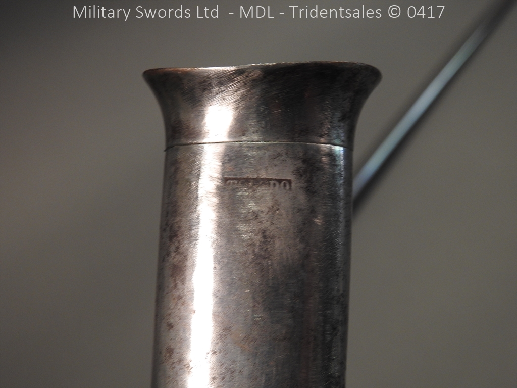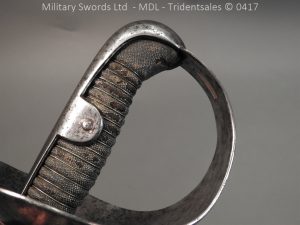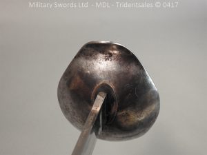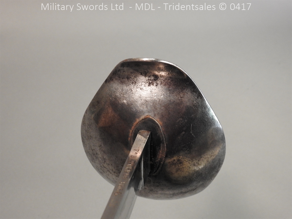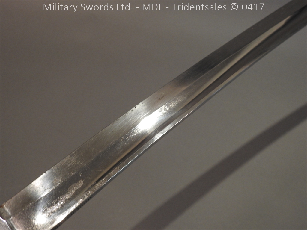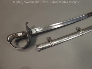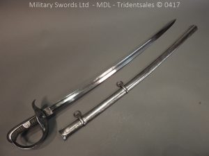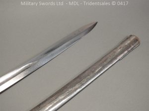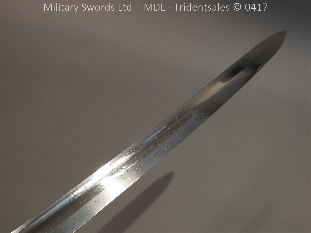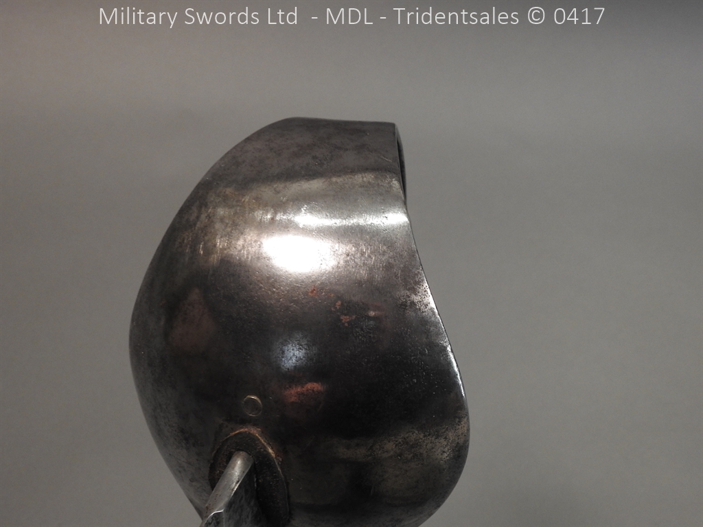 Slightly curved blade in very good condition. Double fuller for three quarters of its length. Blunt edge marked ‘Fba. De Toledo 1868’. Full iron handguard. Metal backstrap with ‘ears’. Fish skin grip with 15 turns of wire. Scabbard with two hangers and marked ‘Toledo’ on front side. Size: Overall 107cm Blade 86cm