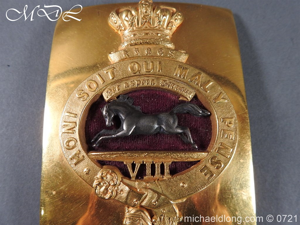 The Kings 8th Foot Liverpool Regiment Officer’s Georgian Should Belt Plate in very nice condition with Georgian crown, regimental oval badge with VIII and silver horse to centre and Egypt at the base. The reverse with original leather lining and fittings
