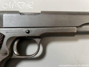 U S Army 1911 .45 ACP Deactivated Pistol it still retains much of its original Parkerized war finish with super grips. Stamped with serial number and United States Property M1911 PAT US ARMY and the reverse side with Colts Patented details dates and address please see images. All deactivated weapons sold are deactivated in the United Kingdom and hold a London or Birmingham proof mark and certificate stating that the weapon has been deactivated correctly and is legal within the U.K.