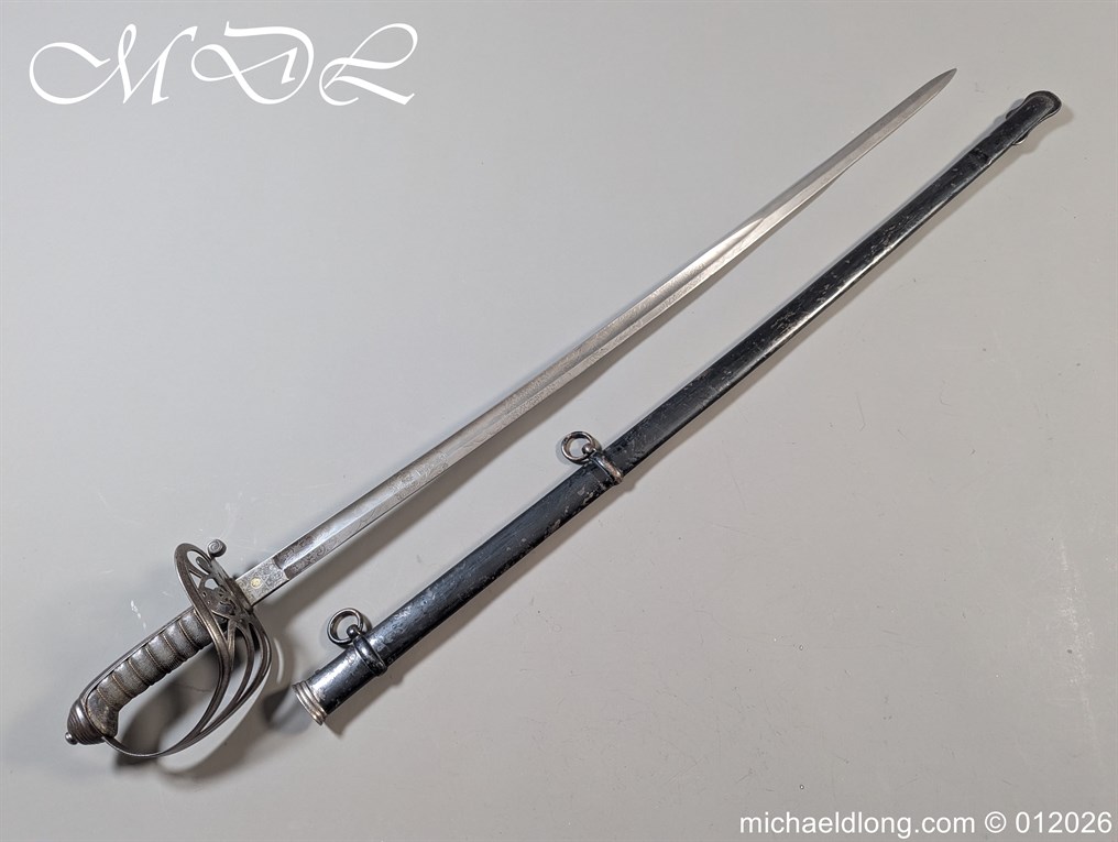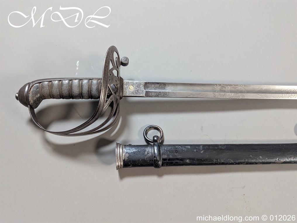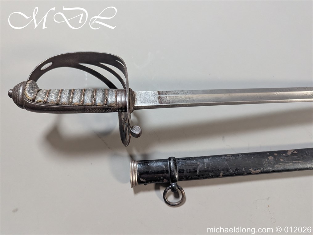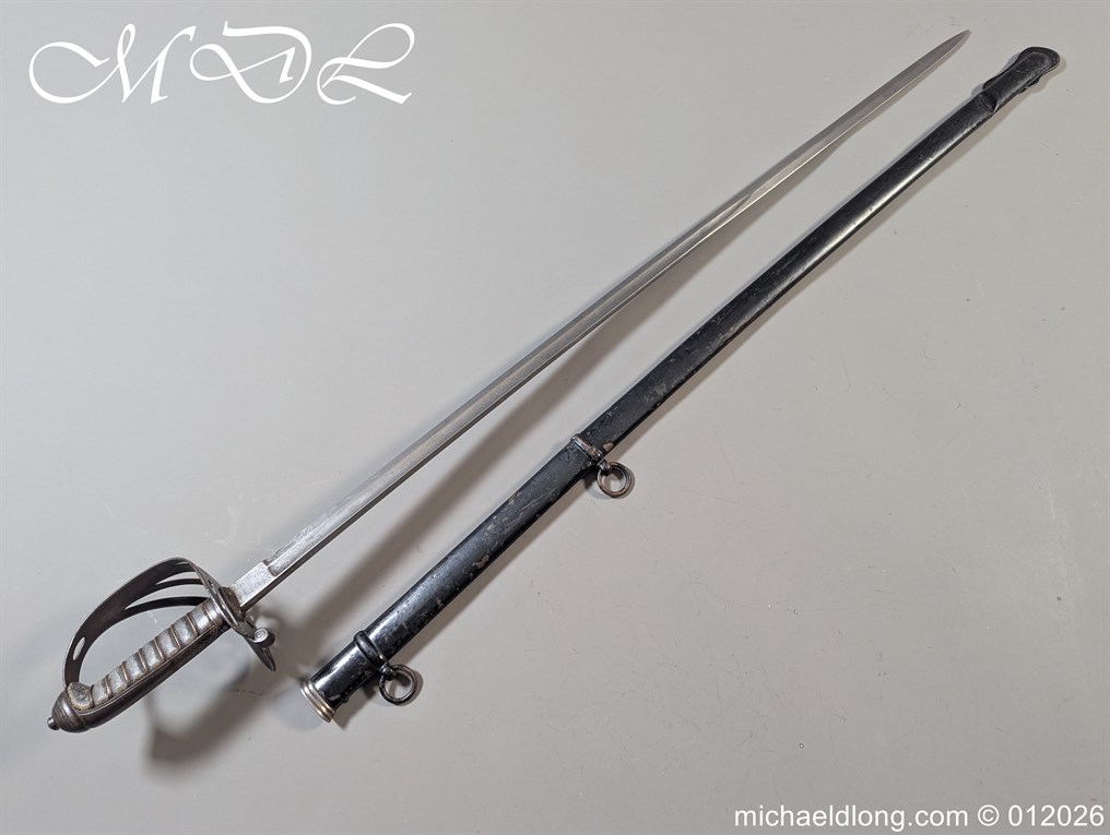 Victorian British Officers Sword belonging to Sir Aylmer Hunter-Weston KCB DSO. The sword is regulation with steel hilt with slung bugle; fish skin grip bound with twisted wire back strap and stepped pommel. The blade slightly curved engraved with Victorian crown and slung bugle the reverse with floral decoration and family crest plus initials AHW. Makers details Pulford and Co London plus proof plug. Complete with steel scabbard which shows age wear to the painted finish plus two small dents towards the drag. Lieutenant-General Sir Aylmer Gould Hunter-Weston, KCB, DSO 23 September 1864 – 18 March 1940 was a British Army officer who served in the First World War on the Western Front, at Gallipoli in 1915, and in the very early stages of the Somme Offensive in 1916 he was also a Scottish Unionist MP.