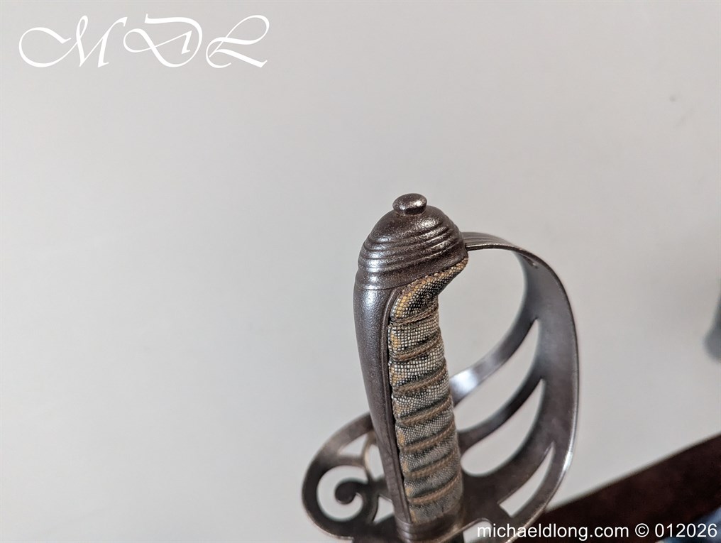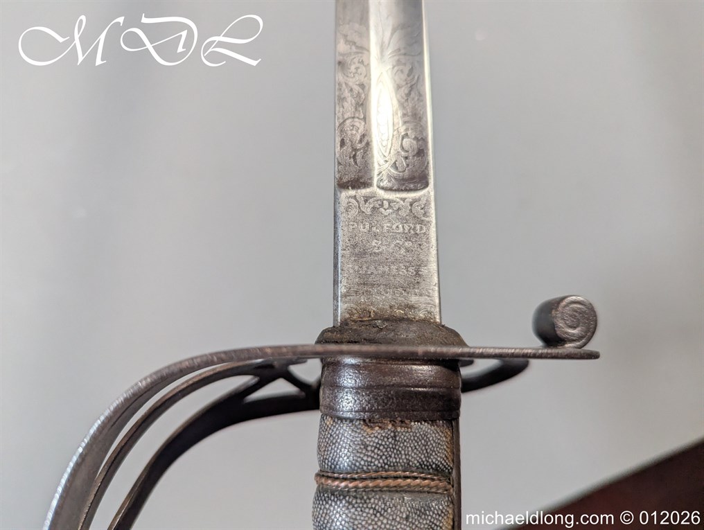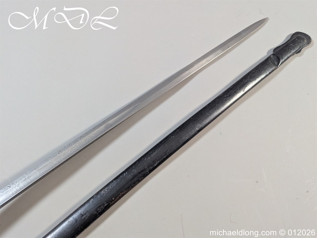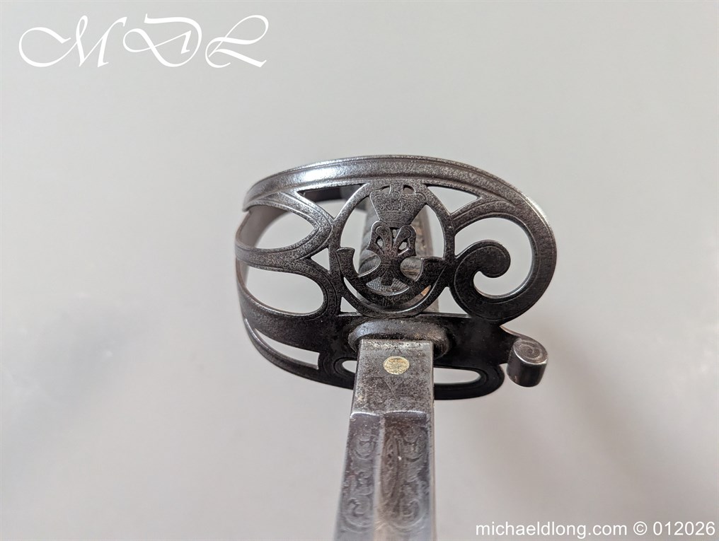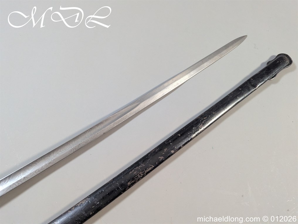 Victorian British Officers Sword belonging to Sir Aylmer Hunter-Weston KCB DSO. The sword is regulation with steel hilt with slung bugle; fish skin grip bound with twisted wire back strap and stepped pommel. The blade slightly curved engraved with Victorian crown and slung bugle the reverse with floral decoration and family crest plus initials AHW. Makers details Pulford and Co London plus proof plug. Complete with steel scabbard which shows age wear to the painted finish plus two small dents towards the drag. Lieutenant-General Sir Aylmer Gould Hunter-Weston, KCB, DSO 23 September 1864 – 18 March 1940 was a British Army officer who served in the First World War on the Western Front, at Gallipoli in 1915, and in the very early stages of the Somme Offensive in 1916 he was also a Scottish Unionist MP.