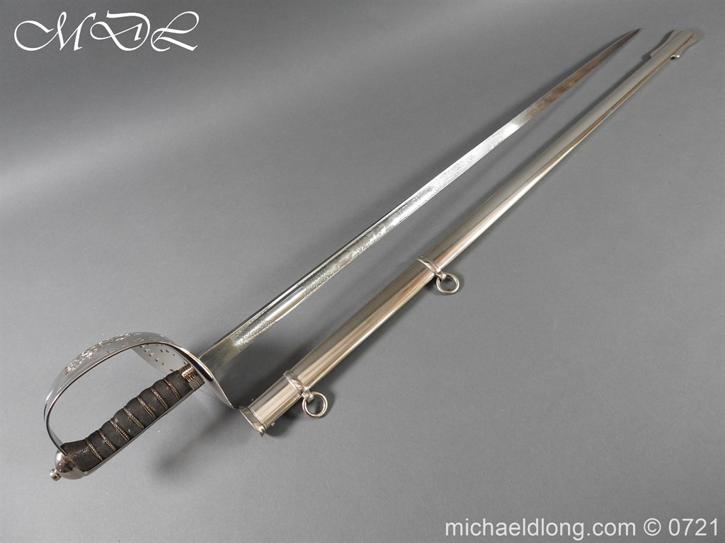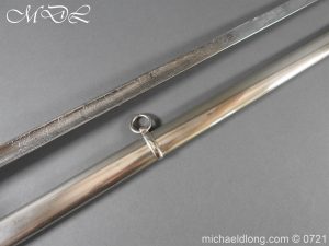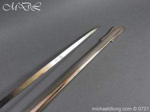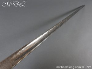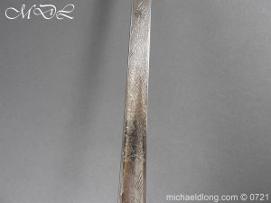 Victorian Infantry Officer’s Sword in very good order hilt possible refurbished during it’s life, regulation hilt with VR below crown chequered back strap and complete with fish skin grip.