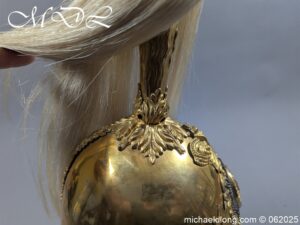 Victorian Royal 4th Irish Dragoon Guards 1847 Officers Helmet in super condition early example c 1855 – 1871 originally part of David JJ Rowe collection and detailed in his book Head Dress of the British Heavy Cavalry page 48 and 49 Complete with red leather liner and white plume