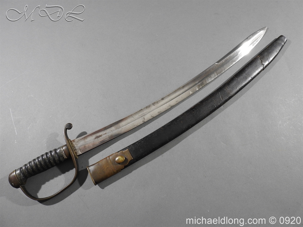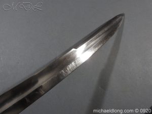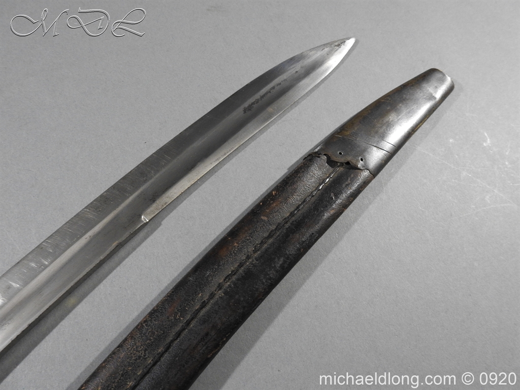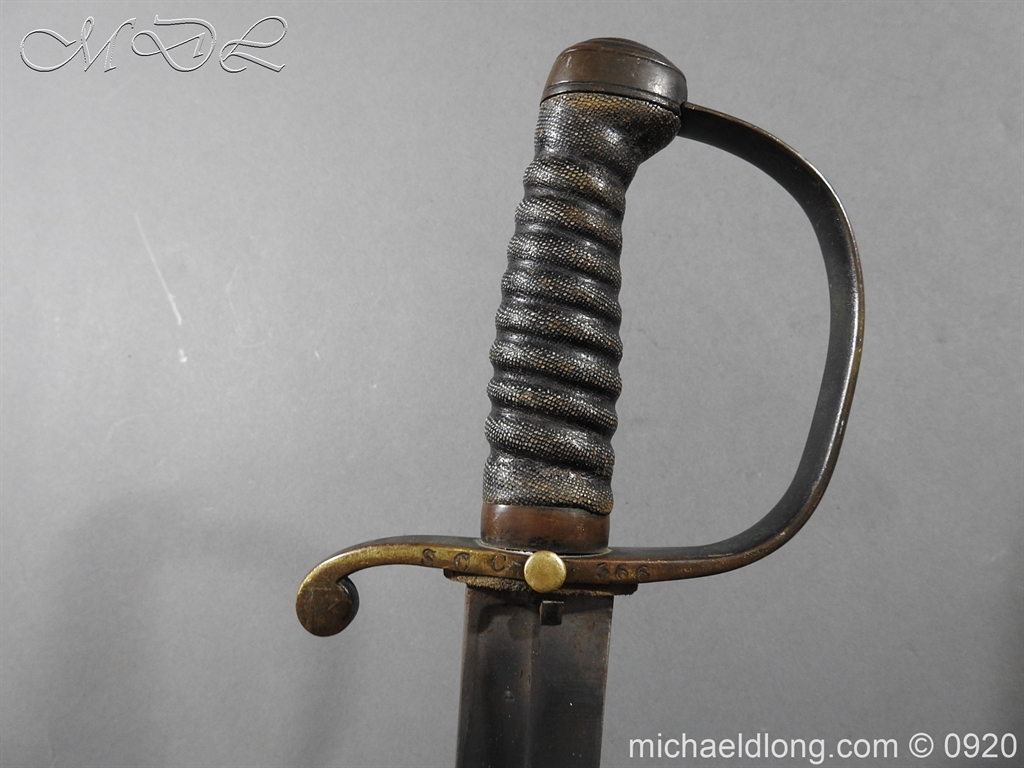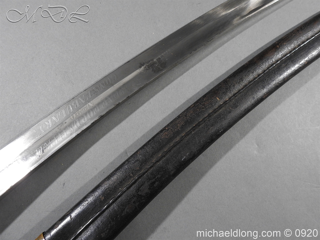 Victorian Staffordshire Constabulary Police Sword brass D guard hilt with fish skin grip. The blade engraved with Staffordshire No 80 Constabulary plus crown and the edge of the brass guard stamped with S C C 366 complete with brass mounted leather scabbard catch in working order