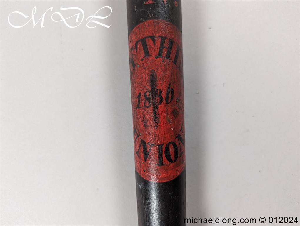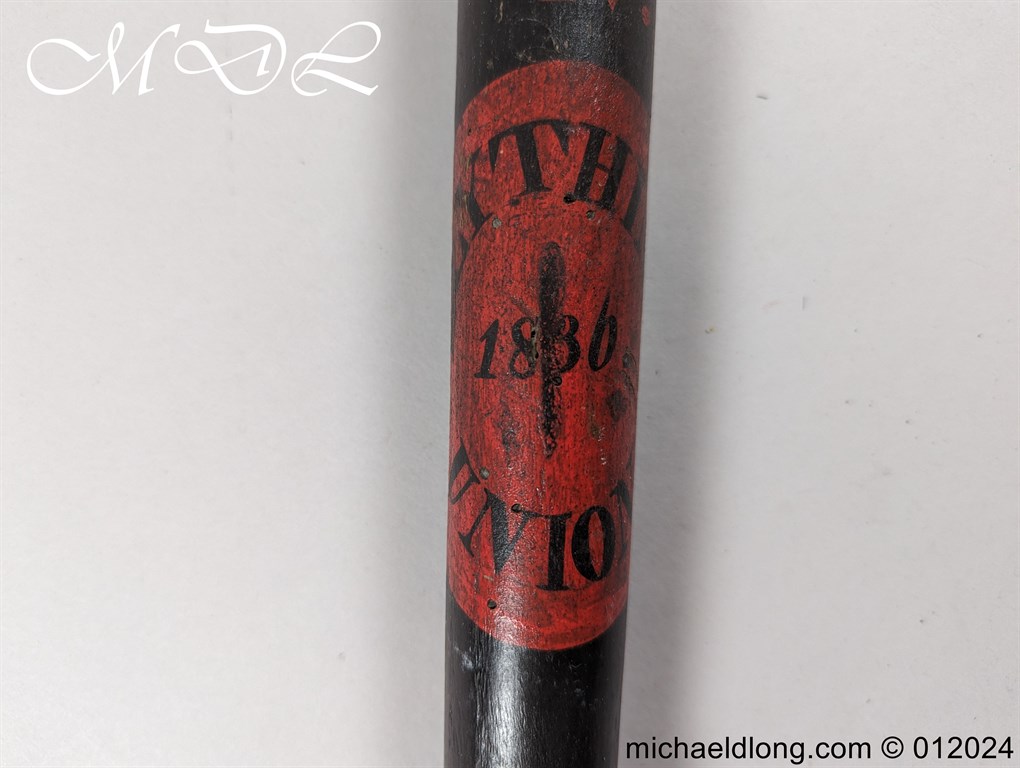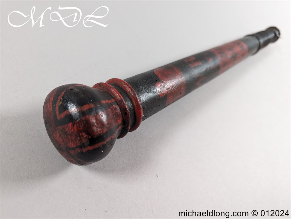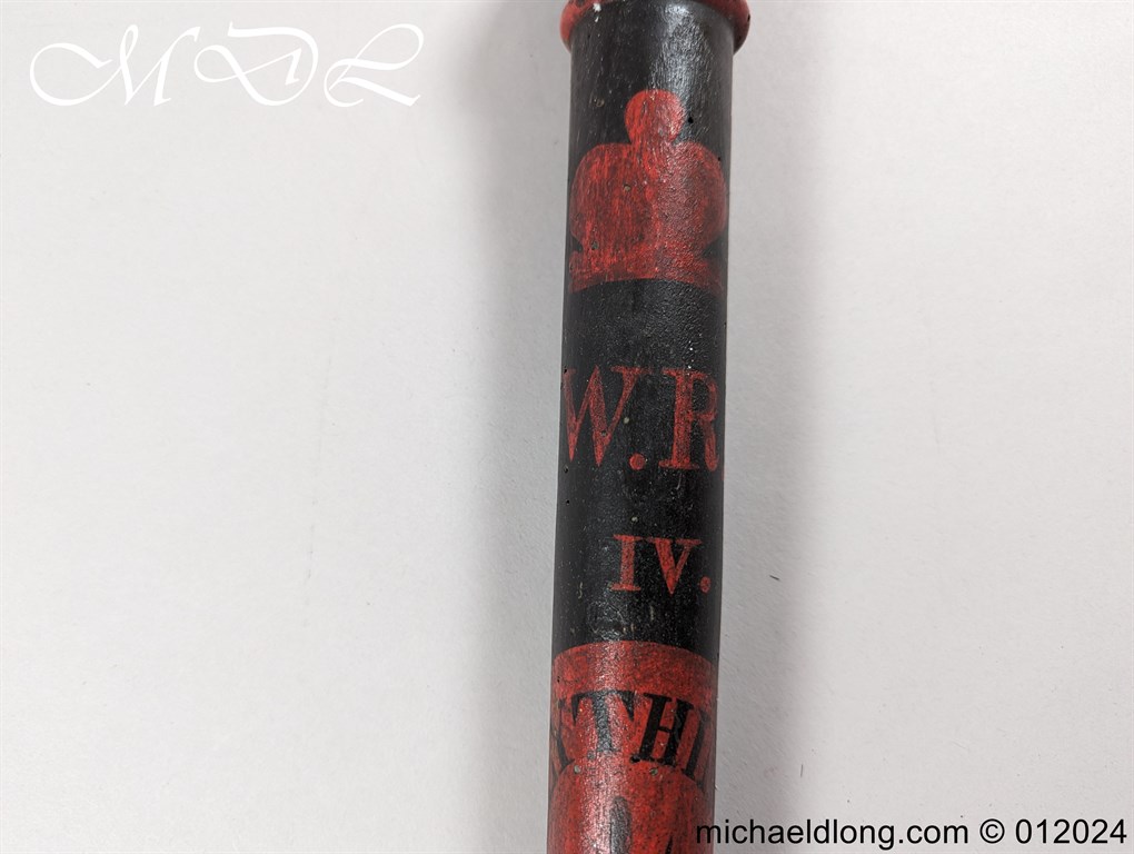 William 4th Blythe Union Truncheon from Suffolk dated 1836. Black painted with red lettering including W R I V and Blythe Union, with crown and turned grip overall length 47cm