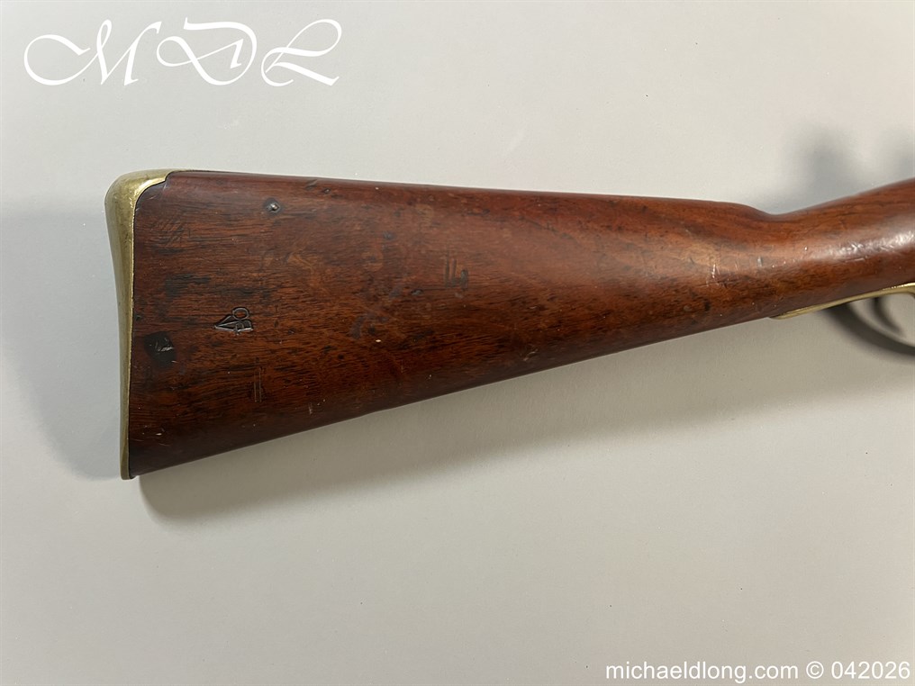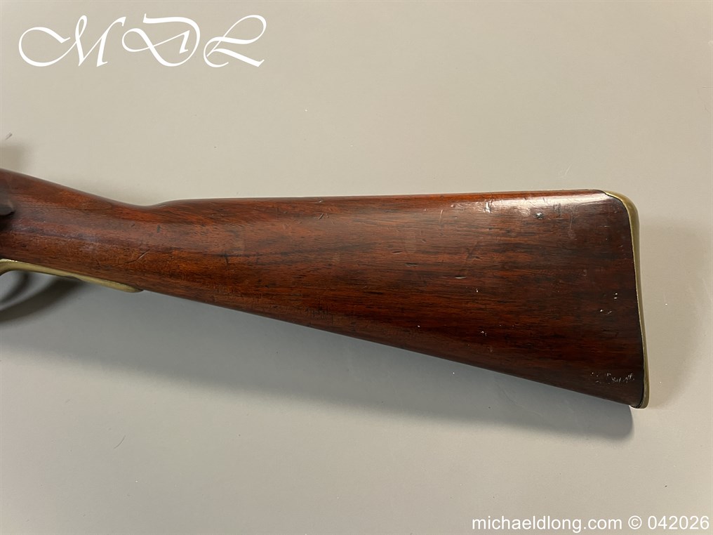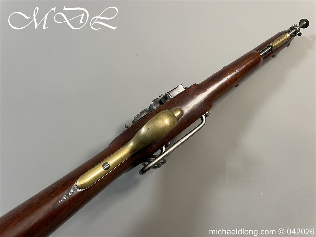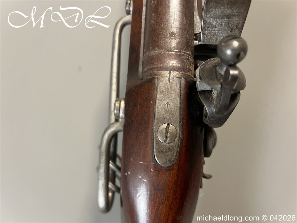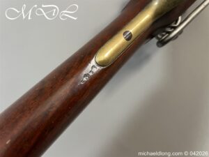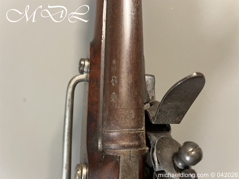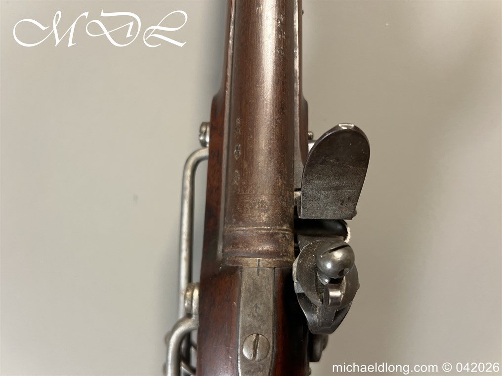 Paget 16-Bore Flintlock Cavalry Carbine, the barrel with brass fore-sight, stamped with Tower proofs and crowned M inspection mark, plain tang with inspection mark, flat engraved lock with WR crowned and TOWER across the tail, figured full stock stamped with Board of Ordnance ownership mark on one side of the butt, initial P under the saddle ring, two inspection marks behind the tang of the trigger guard, and with regulation brass mounts, saddle-bar and ring, and stirrup ramrod. UK shipping Free – Rest of the World at cost
